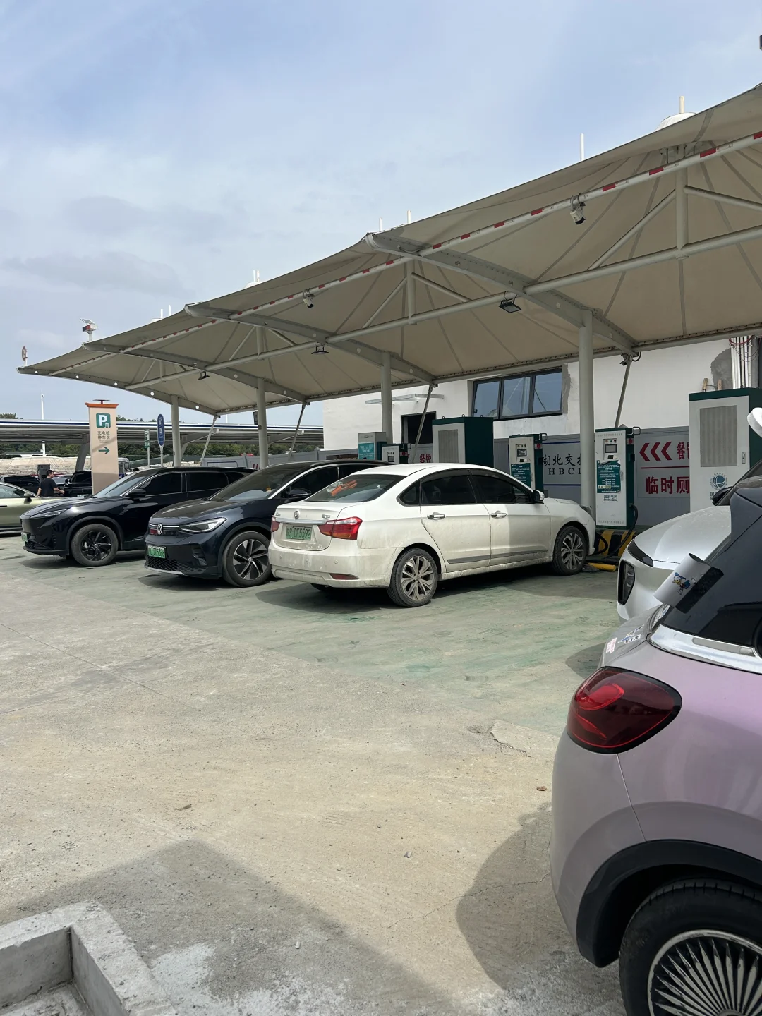 高速都是车车车车车车 服务区充电桩开始排队充电 还好下服务区在省道充电吃饭省事 或者到饭点去下一个服务区就不用担心充电啦 但是车也太多了吧,各种交通事故