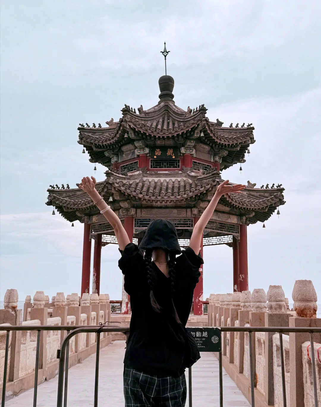 刘亦菲十七八岁时在海边游玩留下的一组照片,肚子上好多肉肉啊!