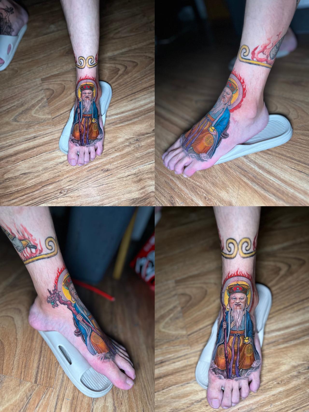 “把土地公公纹在脚上,这操作你敢信? 别人纹身求酷求美,他直接把‘财神爷’踩在脚下(不是),这波操作属实硬核到离谱!彩色纹身细节拉满,土地公公神态超传神,脚腕还有紧箍咒元素,这混搭风格谁看了不迷糊? 有人说这是‘行走的玄学’,有人猜他是想‘脚踏财运’,你觉得这纹身是啥寓意?敢不敢来评论区聊聊你见过的最炸裂纹身,让我看看谁的脑洞比这纹身还绝!”土地爷雕像