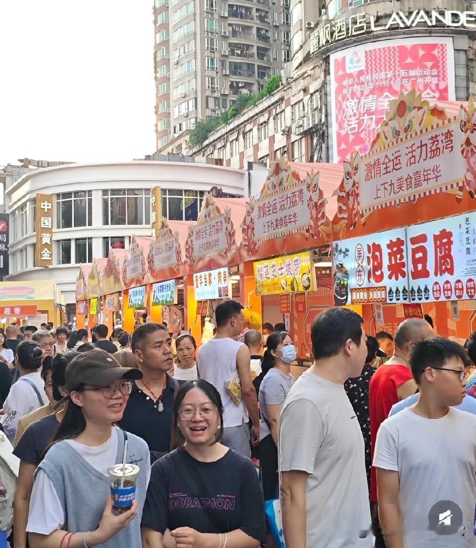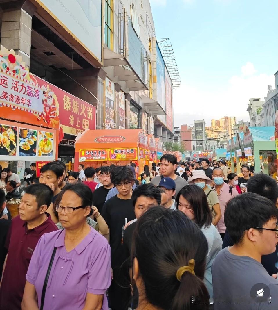 广州上下九仿佛回到了2008年 国庆的广州上下九,直接梦回20年前!人潮像潮水般涌满街道,潮汕牛肉火锅的香气、珠宝店的吆喝声混在一起,国旗和红灯笼把整条街衬得红彤彤。有人挤得鞋跟掉了,有人在人群里举着手机找角度拍照,这热闹劲儿,让老广都直呼“熟悉的烟火气终于回来了”! 可这密密麻麻的人,是真的“复苏”还是“超负荷”?有人觉得这才是过节该有的样子,有人却吐槽“挤得喘不过气,体验感为零”。 你说,这人流爆棚的上下九,是该点赞它的活力,还是该吐槽它的拥挤?