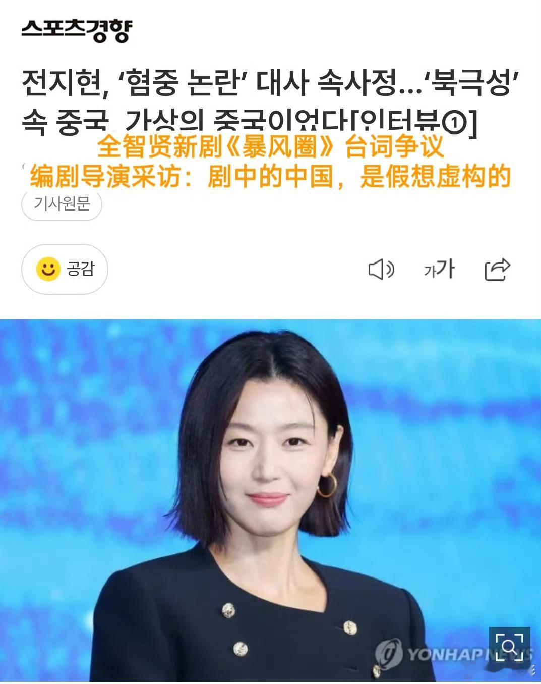 剧中的“中国”是虚拟的名字,恰好和中国同名。对不起全智贤,全智贤是个格局很大的演员,还会反过来安慰编剧,被全智贤感动到了。