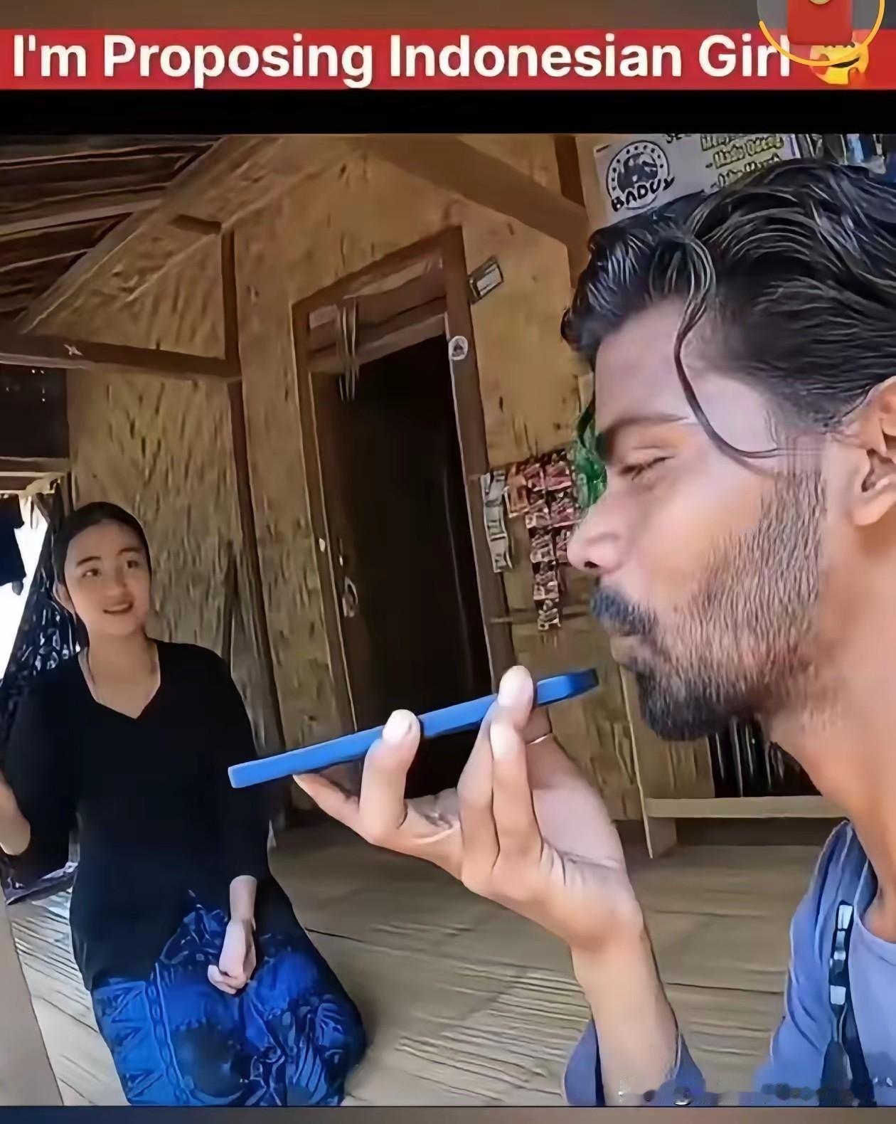 三哥真乃我辈楷模! …… 印度尼西亚,一本地漂亮女孩被一印度三哥求婚。 三哥简单而又直接,根本不在乎语言不通,用手机软件翻译:“你能嫁给我吗?” 迷之自信! 看肤色,这位印度三哥也不像高种姓,长相也普普通通。 好在女孩慧眼如炬,当场拒绝。 不然,就真的一朵鲜花插在牛粪上了!