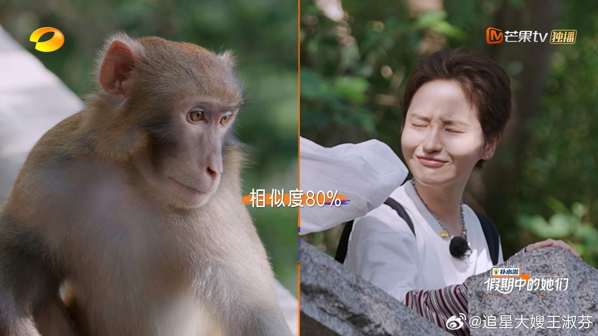 绝了!蒋一侨在花果山找到“世界上的另一个我”,竟然是只猴子!宋妍霏火眼金睛一秒破案,对比图相似度高到离谱~ 假期中的她们