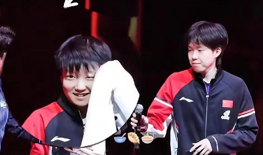 衣服怎么能谁穿都一样呢, 怪不得莎莎偷笑, 原来原因在这里。 继草莓熊穿王楚钦同款衣服以后, 采访混双的主持人也穿了同款衣服。 在看到主持人的那一刻, 我感觉草莓熊穿着也能看过眼。 要说看到王楚钦穿这一身, 这衣服真好看,想买。 看到草莓熊穿这一身, 这衣服也不是非买不可。 最后看到主持人穿这一身, 还是算了,这衣服不能买。 网友们调侃, 要说楚钦老师刚宣传完, 商家还在打包呢, 这主持人整这么一出再给退货了。 怪不得莎莎在混双采访时偷笑, 原来也是看到了这身衣服, 也难怪衣服相同, 人不同。[捂脸][捂脸] (图片源自于网络)
