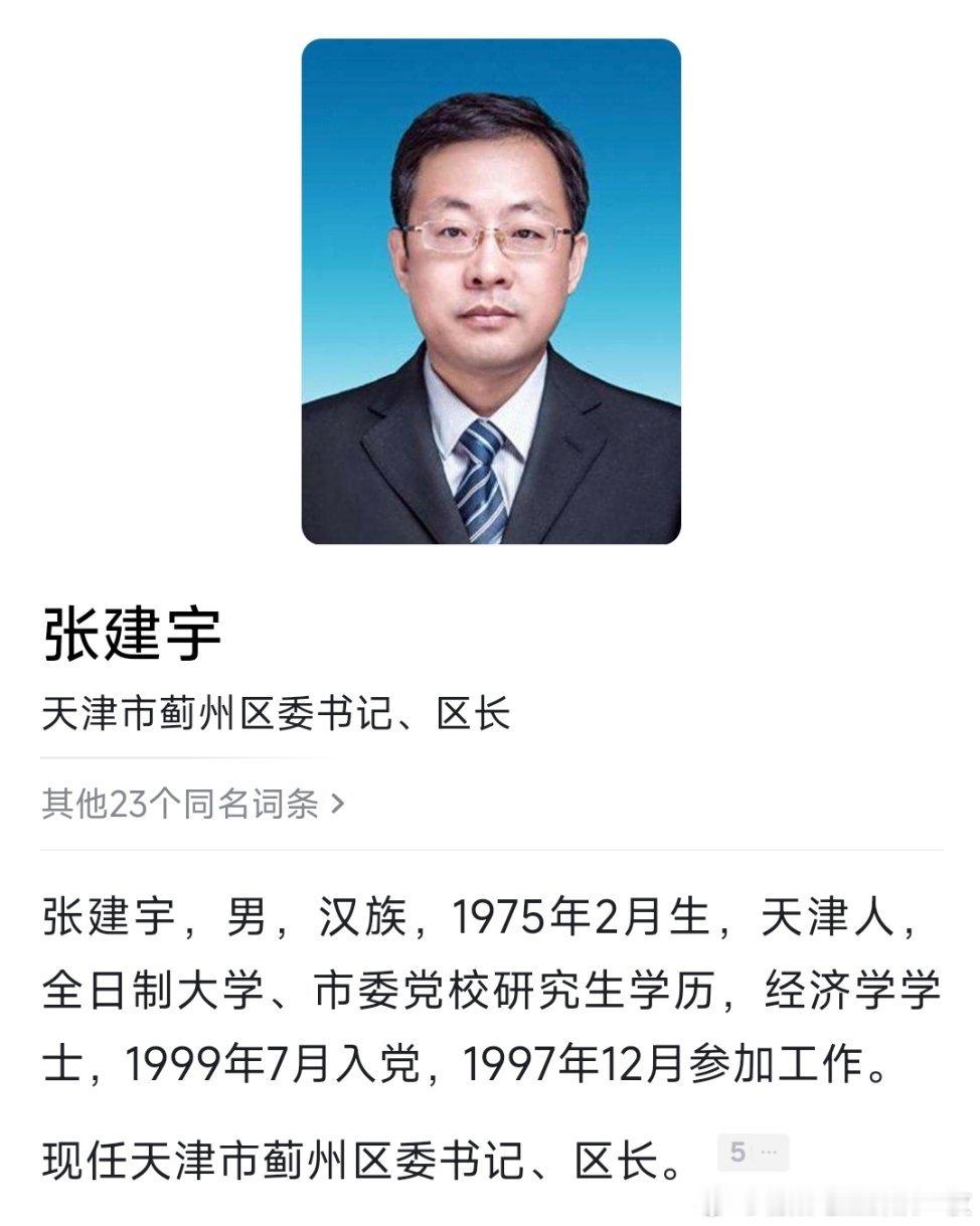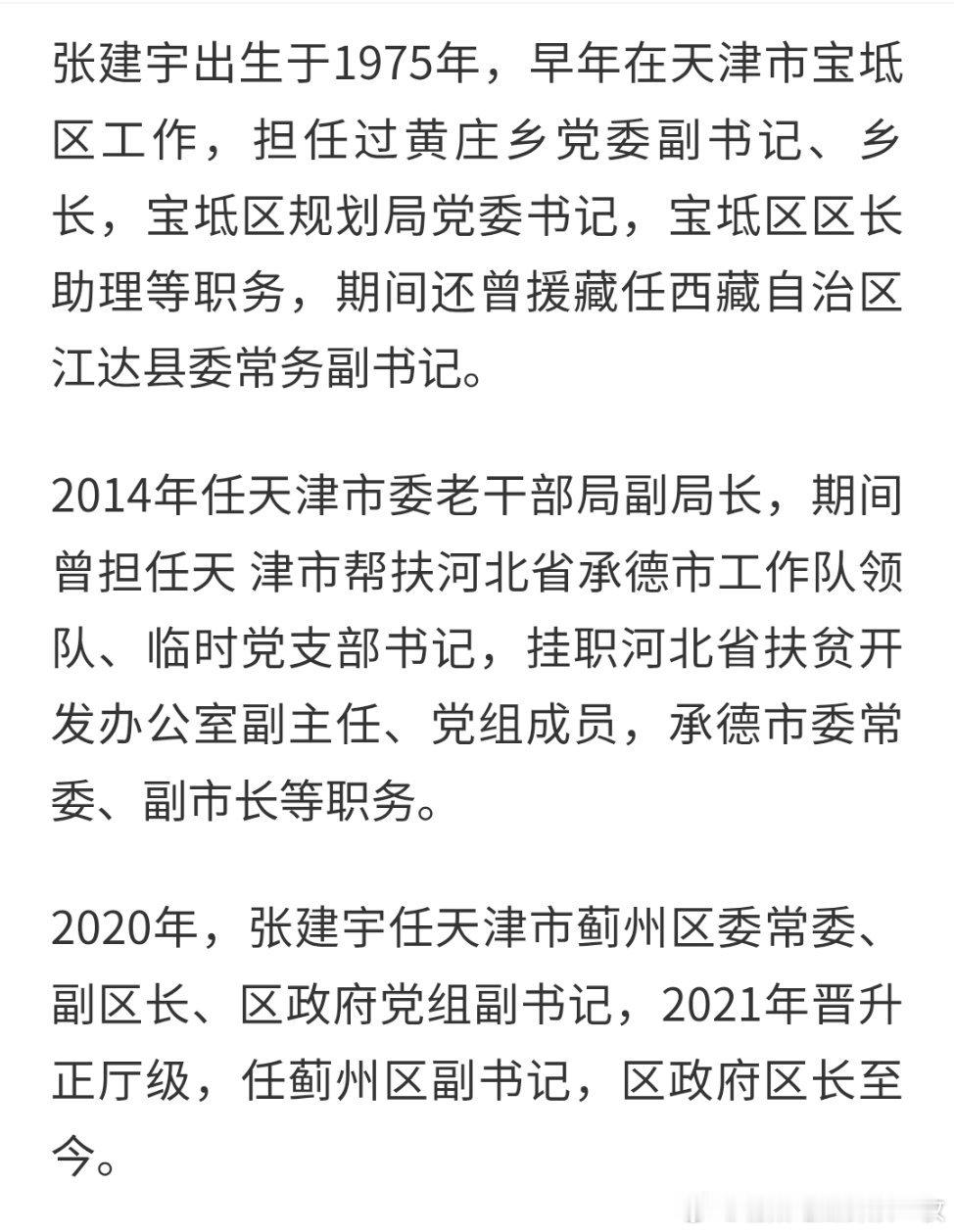张建宇任天津市蓟州区委书记。热点现场