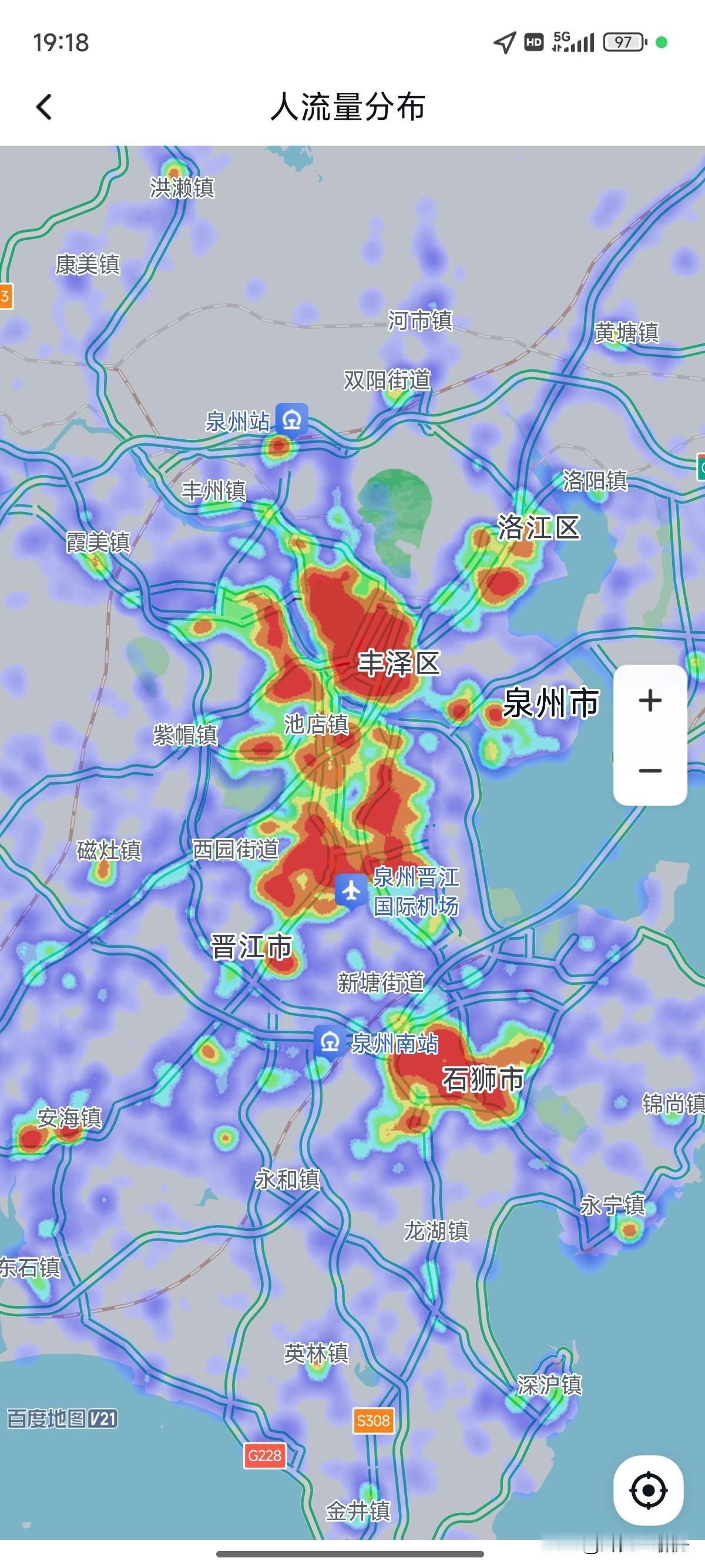福厦泉三城同时间同比例热力图,数据是客观真实的,福州更胜一筹,而且城市化的集中程度也最高。