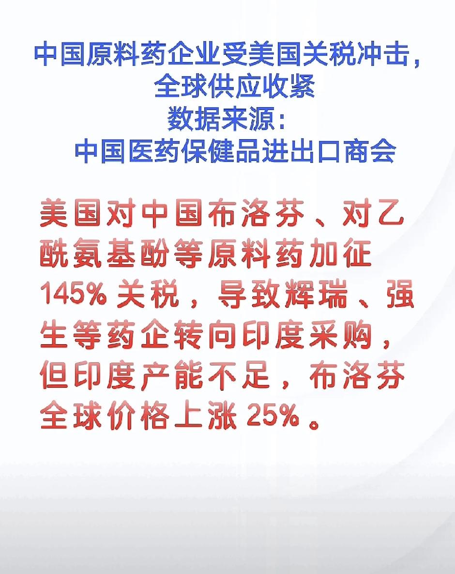 美国对中国布洛芬原料药加征关税,就像突然抽走拼图里最关键的几块。中国原本承担着全球四成原料药生产,相当于医药界的"世界工厂"。关税实施后,药企们手忙脚乱地寻找替代供应商,但印度等国的产能就像小水桶接大瀑布,根本接不住缺口。原本每片布洛芬只需3分钱的原料成本,现在可能翻倍,最终药价自然水涨船高。 印度看似接住了部分订单,实则面临"消化不良"。印度药企生产布洛芬的原料60%需要从中国进口,关税导致中间商成本暴涨,就像买菜要经过三道转手,每道都加价。更糟糕的是,印度港口运输效率低下,一艘货轮卸货时间顶中国两艘,导致原料积压在码头,药厂生产线被迫停工。这种"拆东墙补西墙"的做法,反而加剧了供应链的混乱。 全球药企陷入两难:要么硬着头皮回美国建厂,但新建厂房就像沙漠里种树,没有三五年根本长不成;要么冒险尝试非洲、东南亚的新供应链,但当地基础设施薄弱,就像在羊肠小道上开卡车。这种混乱导致美国药店出现"抢药潮",普通退烧药都可能断货,而药企利润被关税和涨价层层挤压,最终买单的还是普通患者。 个人认为,这种"关税大棒"看似保护本土产业,实则打乱全球分工。就像强行把交响乐团的提琴手换成新手,表面上维持编制,实际演奏效果必然走调。医药供应链需要全球协作,单边制裁就像在精密钟表里塞沙子,最终损害的是所有人。解决之道应是建立多边合作机制,而不是筑墙护城河。