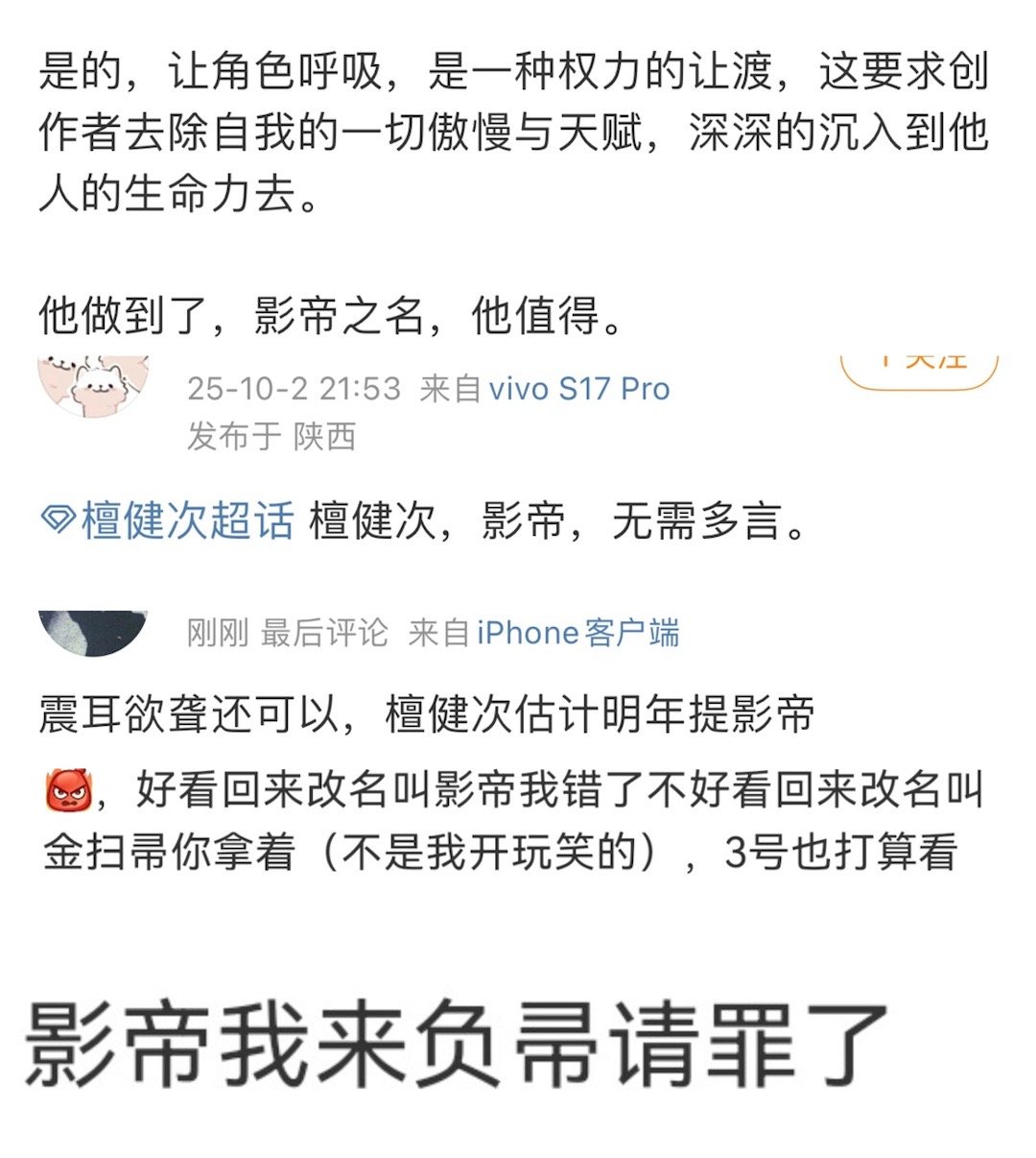 影评人和网友都觉得檀健次在震耳欲聋里贡献了影帝级别的表演。