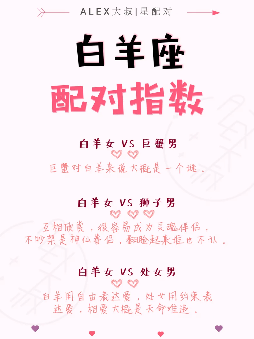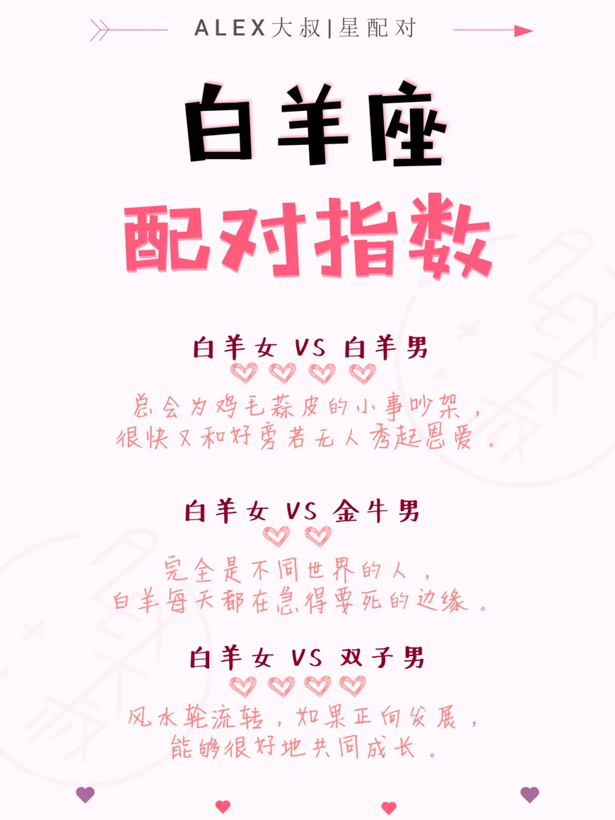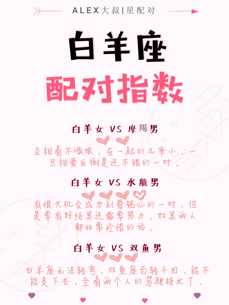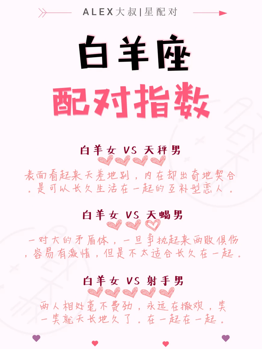 女生的话,请你们耐心等到自己的星座篇,就能看到和白羊男的配对打分了。