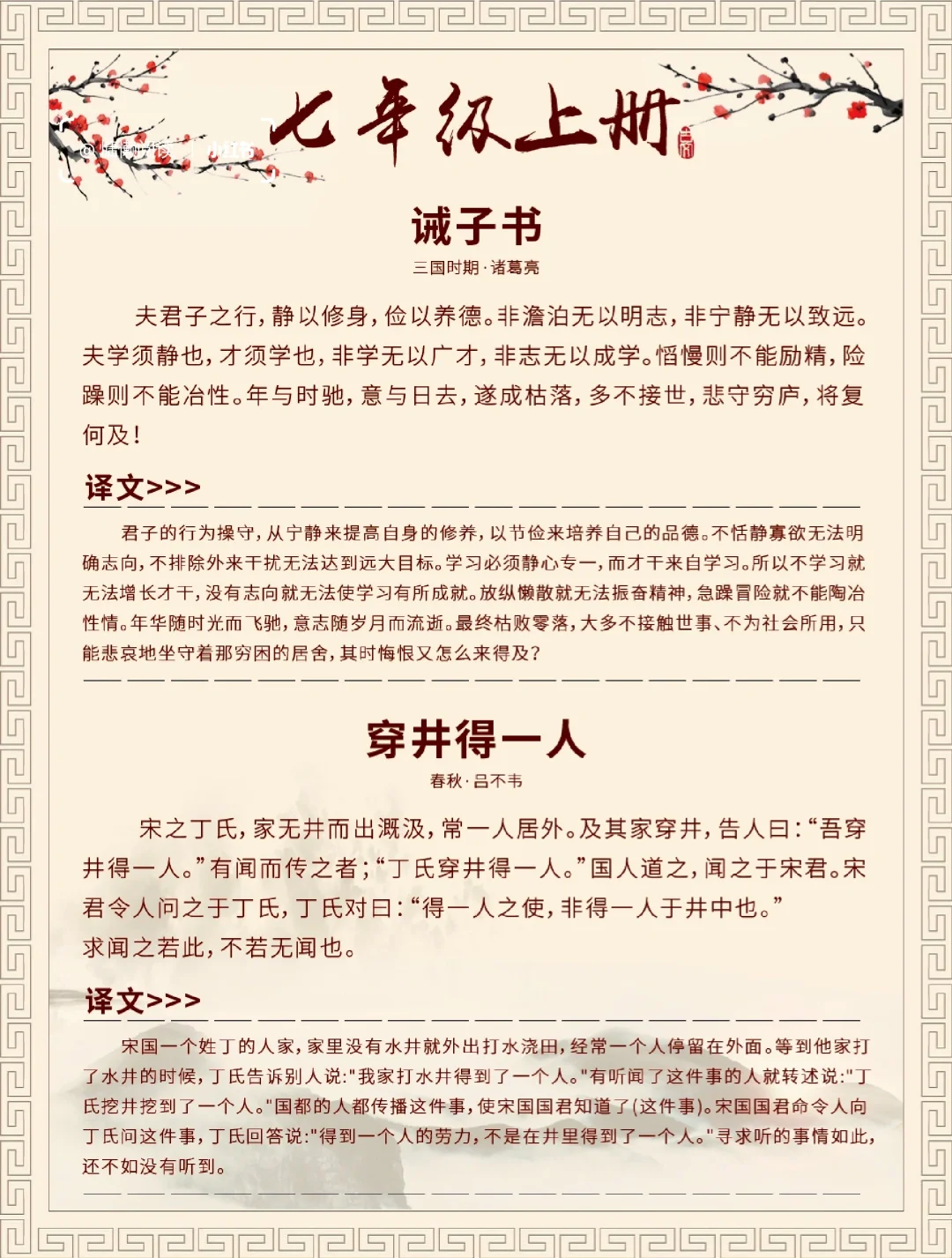 文言文 弘扬中华传统文化 周易 读书成长 古诗词 语文文言文 初中文言文 励志文案 七年级上册语文 七年级 古文 论语 诸葛亮 国学经典