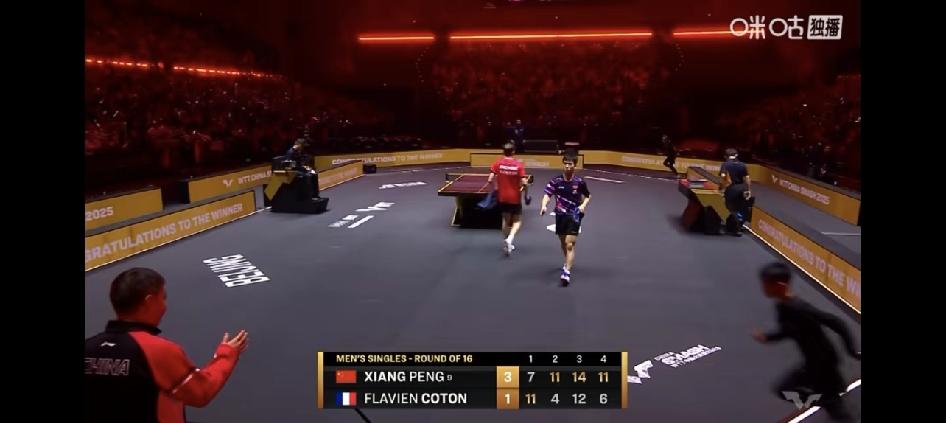 向鹏3:1科顿!晋级八强!不容易! 男队此刻八强还有4名中国队员很不容易了。关键第二局0:4落后相当于打了个11:0然后11:4拿下,第三局6:10落后上演大逆转非常关键!恭喜向鹏。