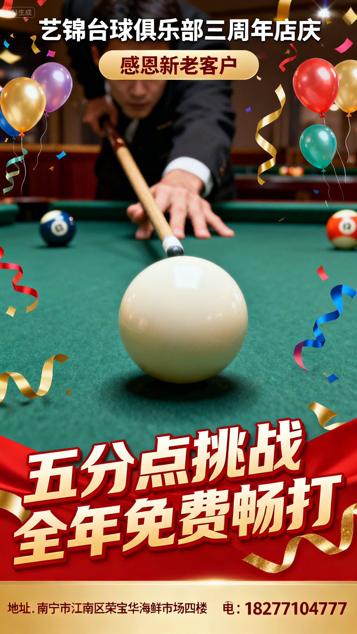 艺锦台球运动馆三周年感恩回馈活动🎉五分点挑战只要您敢挑战,即可解锁...