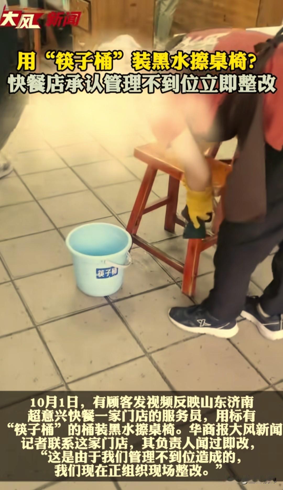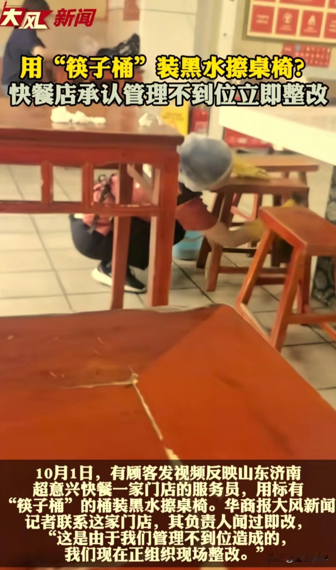 济南超意兴有一家门店,有一顾客去吃饭的时候发现店员竟然用专用筷子筒洗抹布,擦桌子,打扫卫生,他拿出手机拍了视频,表示这样太不卫生了。 关于此事门店负责人说,确实是他们管理不到位,出现这样的情况,她已经赶到现场进行整改了,然后马上开展员工培训。 确实超意兴出现这样的情况还是挺让人有点震惊的,超意兴作为山东人的平民快餐品牌,也因为是连锁,加上经济实惠,很多人还是比较信赖的。 尤其是中午饭点,好多店里吃饭的人都排队,最近外卖也点的他们家的最多,希望这种事情以后不要出现,让大家能一如既往的去消费,毕竟经济实惠是真的。