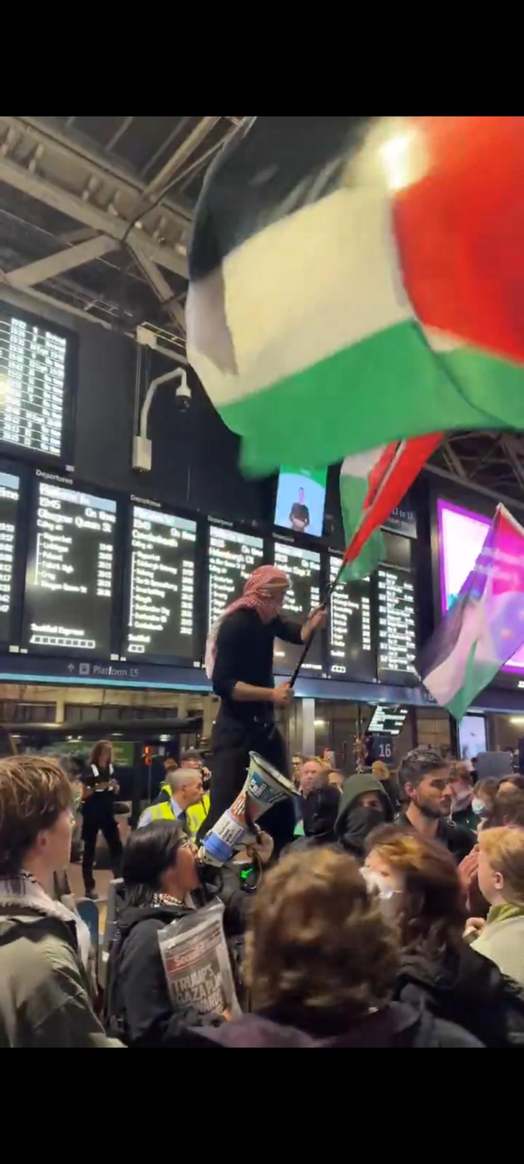 英国爱丁堡韦弗利站的巴勒斯坦人及其支持者。 英国俨然成了巴勒斯坦和穆斯林的天堂!