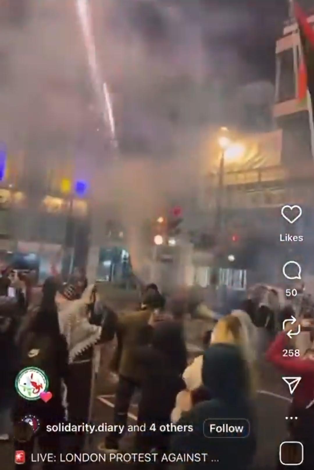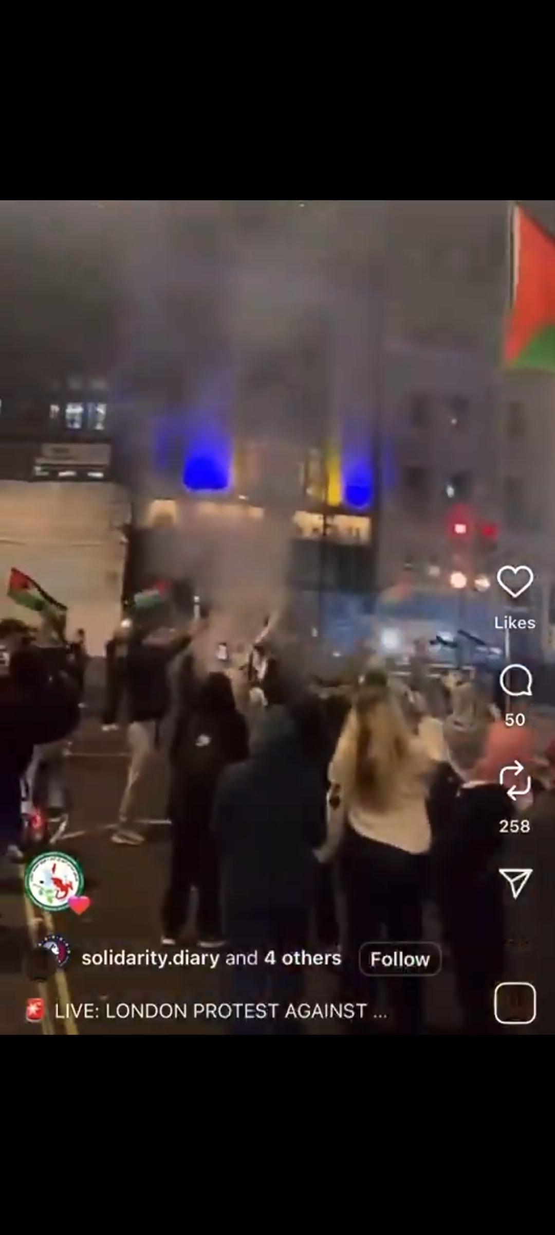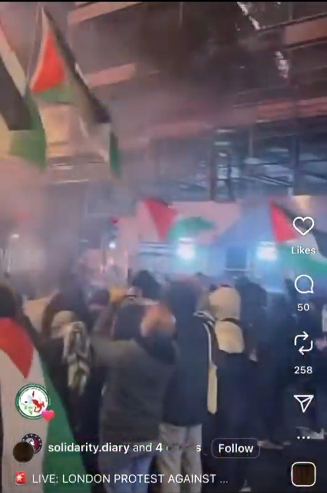 英国伦敦支持哈马斯的大量穆斯林占领了伦敦市中心街道,在最繁忙的地区燃放烟火。并且