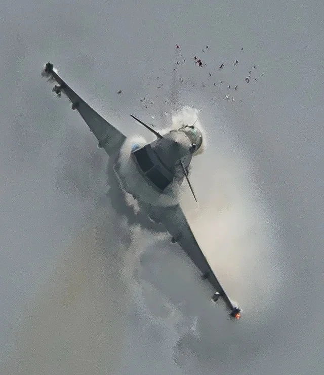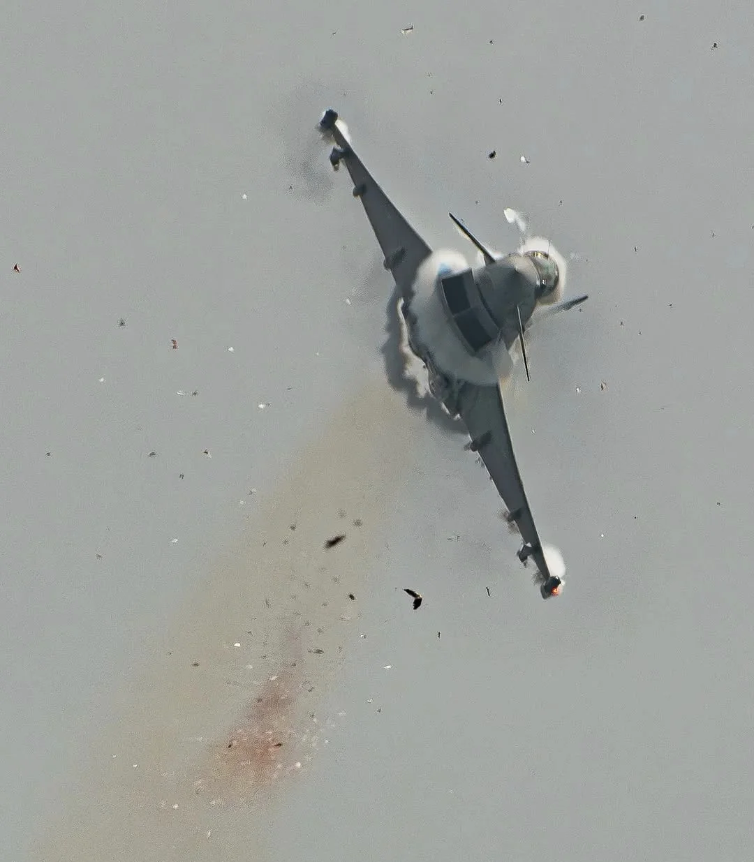 西班牙空军台风战机在航展中撞鸟全过程记录
