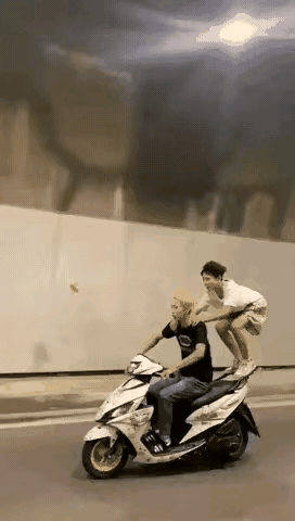 年轻人的疯狂 马路上,两个年轻人疯狂地骑着摩托车,一个左倒,一个右倒,做着各种姿势,突然,后边那个年轻人从车上摔了下来。 视频看到这里,感到他们没有一点安全意识,骑摩托车时,故意炫耀车技,一会站在摩托车上,一会儿蹲在摩托车上,后边的那个年轻人还拉着黄毛的衣服,使自己失去平衡,很快摔在了地上。 常言道,人不作不死,一作就死,这句话说的有道理。骑摩托车为啥要疯狂?寻找刺激,刺激找到了,身体也受伤了。 奉劝年轻人,父母把你们养大不容易,要珍惜生命,不要拿命去疯狂,一旦出了事故,怎么对得起父母,孩子是父母的希望,没有了孩子,父母会伤心一辈子。 朋友们,你们对这年轻人怎么看?欢迎讨论! 声明(视频来源于网络,侵权联系删除)
