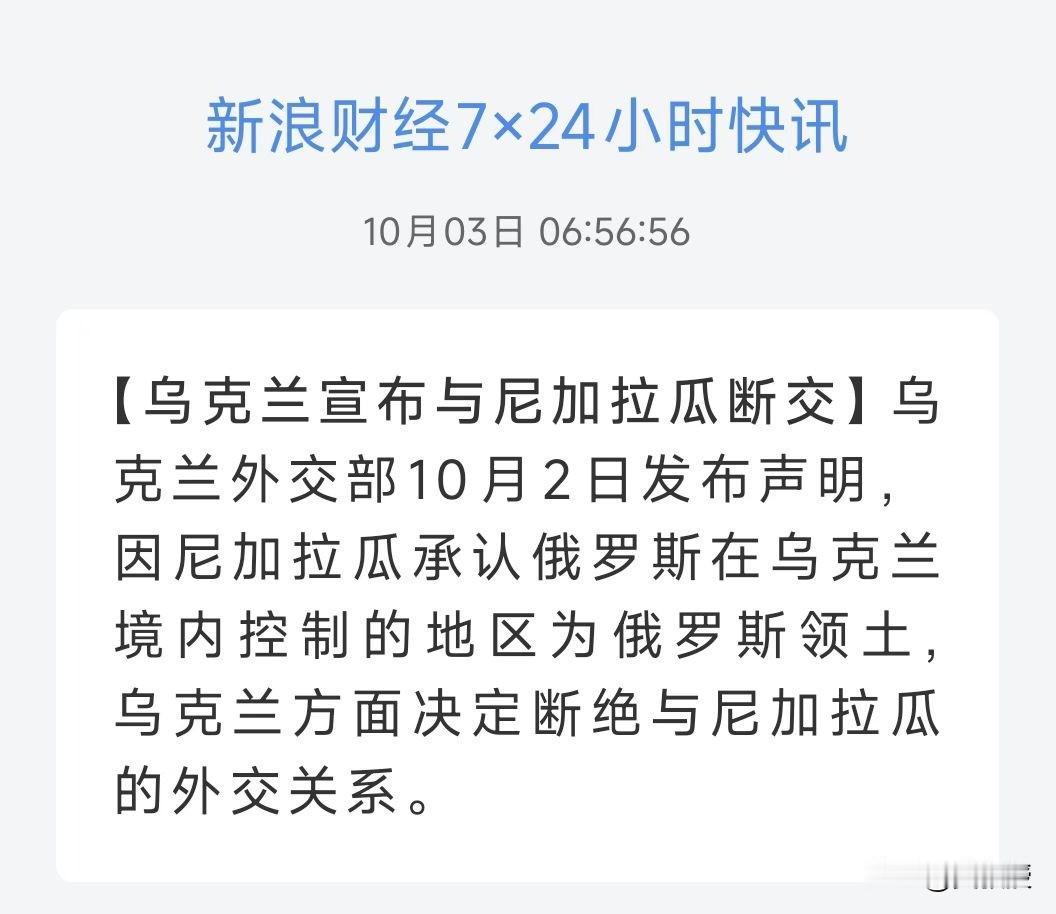 乌克兰 宣布和尼加拉瓜 断交
