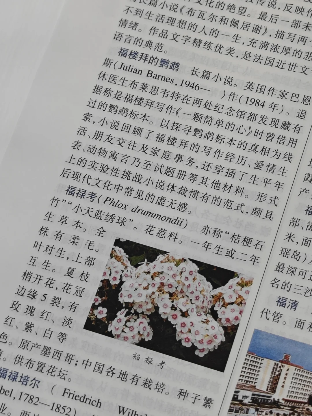 《辞海》搬回来后,我放在木墩子上,没事翻翻。那天,我翻“福禄考”时,女儿看到了,大声喊:“绣球!绣球!”又跑去喊她妈,“妈,你看爸爸这本书里有我的绣球。”后面她偶尔也和我一起看,说:“爸爸,别的书我都不要;等我长大了,这本书你要送给我。”