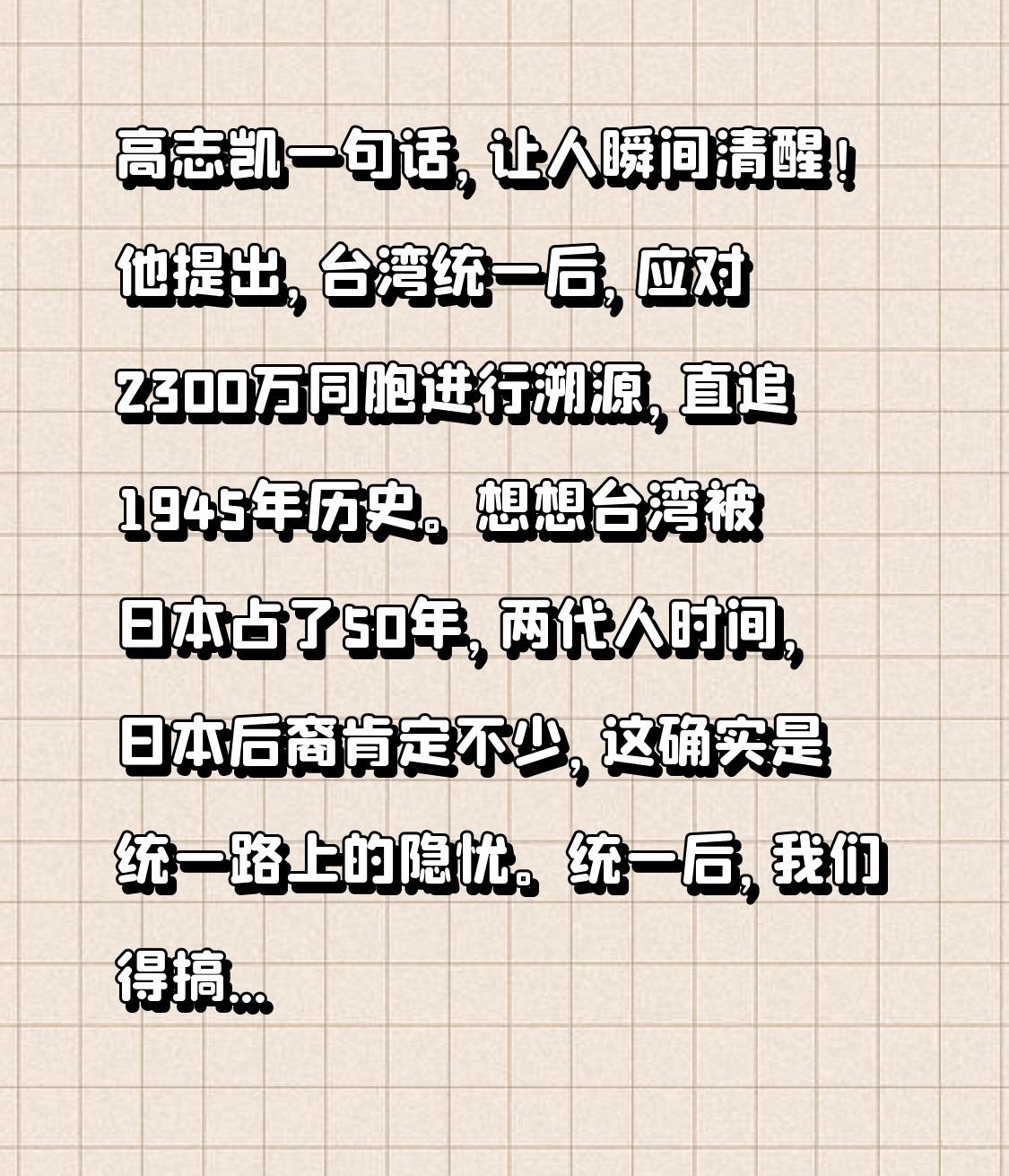 高志凯的一句话,令人瞬间清醒! 他提议,台湾统一后,应对2300万同胞开展溯源工