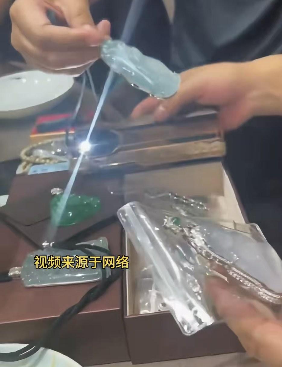 魏三直播间放狠话了,说那块翡翠砸碎了也不给娇娇。 2023年娇娇送她的蓝冰种翡翠四臂佛牌,2025年4月往回要。 魏三说那东西已经送人了,玉没了,票子也不会给,即便玉在手砸碎也不会给的。 看以前的视频,娇娇拿出一盒高货让魏三挑,魏三嫌绿翡翠“土”,特意挑的蓝色。 但他挂脖子上的这个,与娇娇手机里展示的还不太一样,没照片那么蓝那么透,但也是好东西了。 要不说他俩是师徒,在性格方面还挺像。