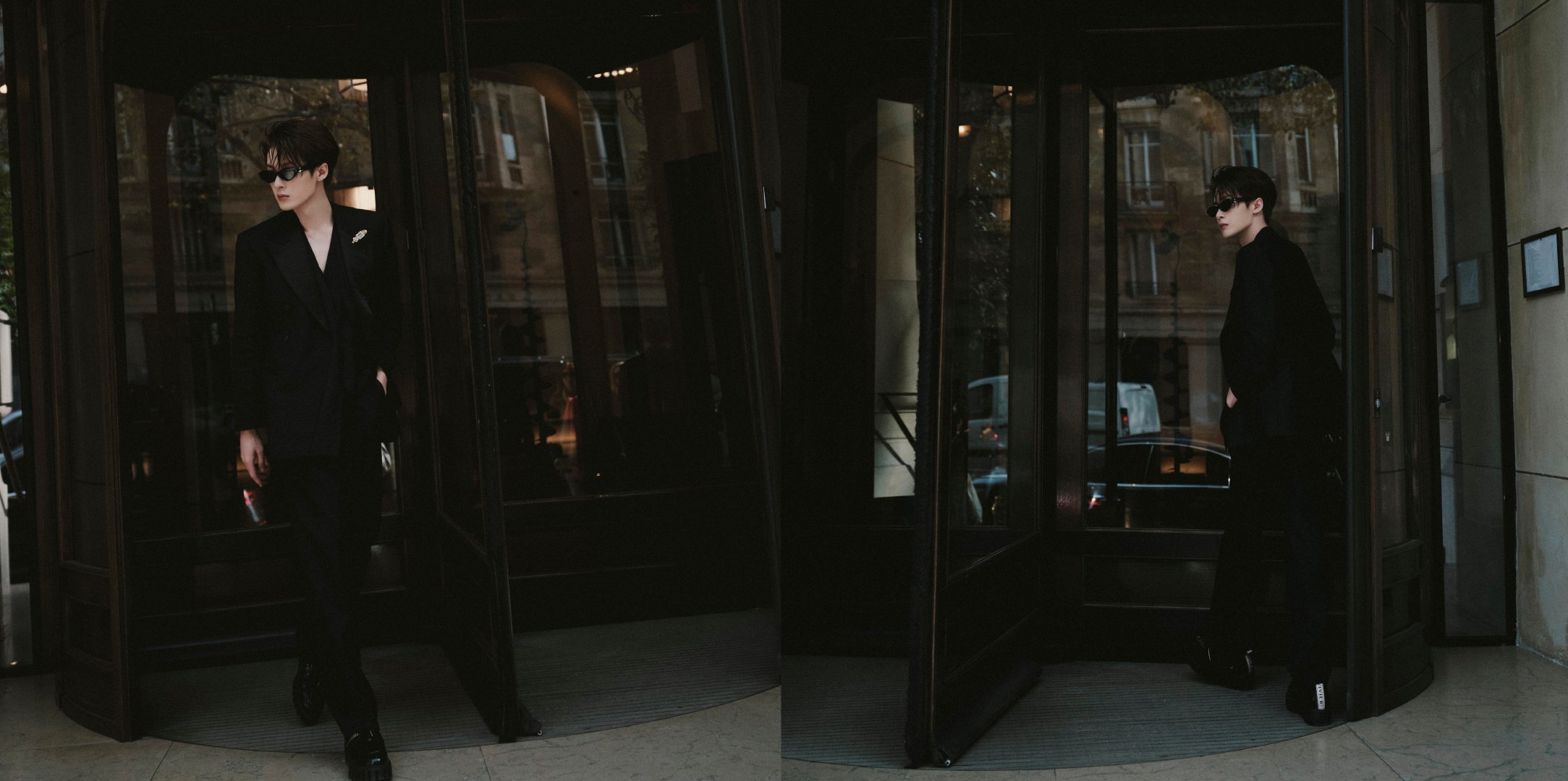 檀健次|RogerVivier2026春夏系列发布会造型出图,黑色西装配大背