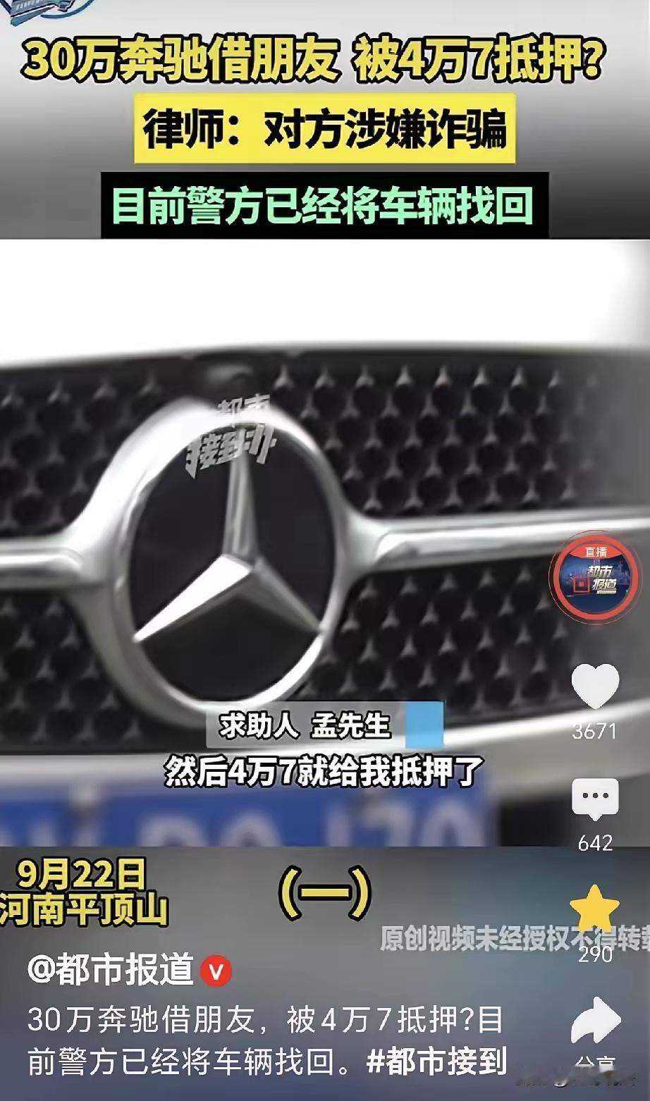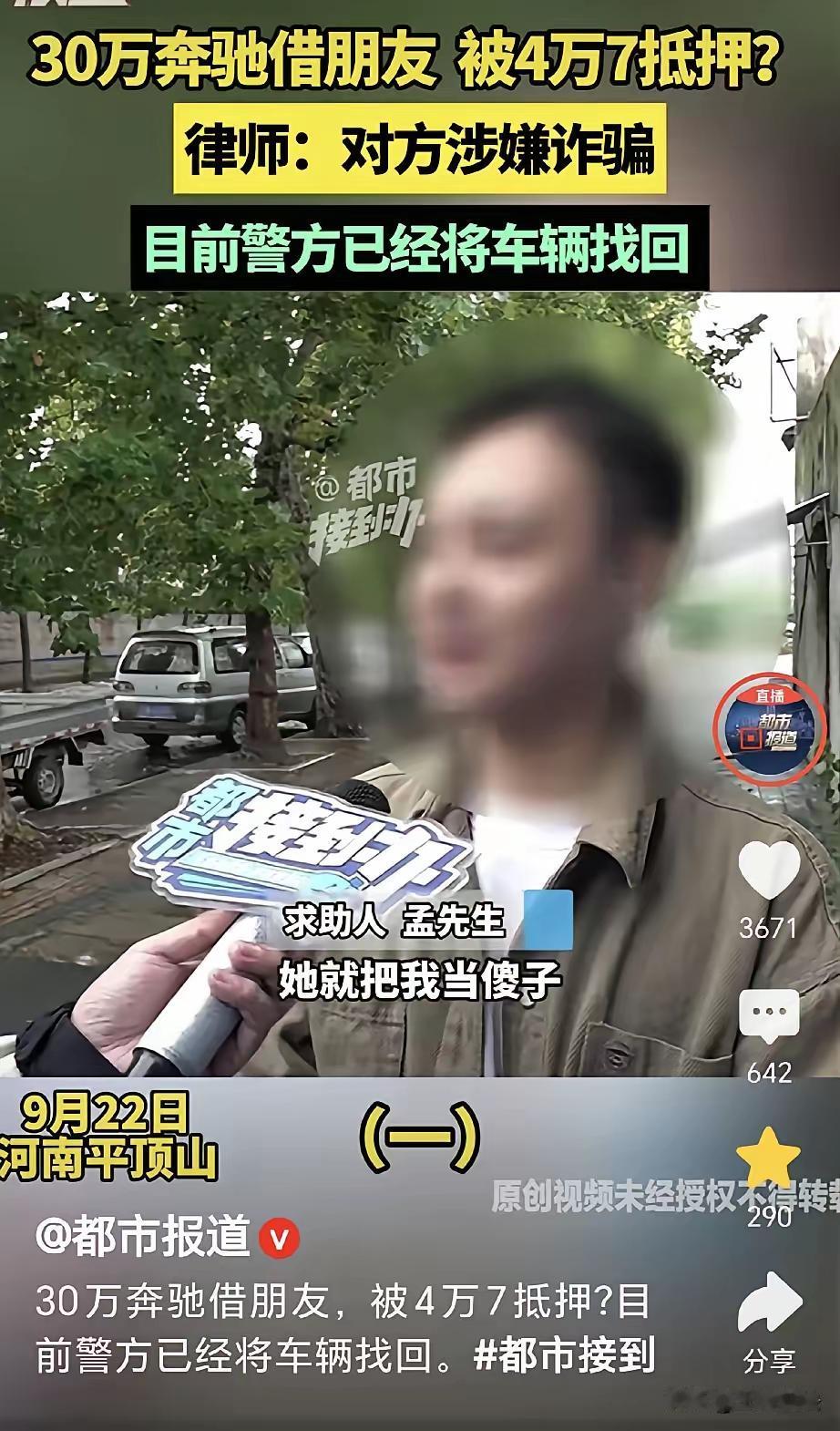 这起事件反映出信任与法律界限之间的严重冲突,也提醒我们在面对朋友借车等事情时须要保持警惕和理性。以下是对此事的分析与看法: 一、事件回顾 孟先生是一位爱惜车辆、为人诚恳的人,他对朋友吴女士信任有加,毫不犹豫地将价值30多万的奔驰借出,结果却遭遇信任被背叛、车辆被抵押甚至涉及可能的诈骗行为。 二、法律层面分析 物权和借贷关系 根据《民法典》第240条和第235条,所有权人可以合法使用和处分自己的财物,借用他人财产需取得所有权人的同意。 吴女士作为借车人,没有取得孟先生的同意就私自抵押车辆,此行为属于超越借用权限的无权处分,抵押无效。 孟先生作为车辆合法所有权人,有权要求返还车辆,任何擅自占有或处置车辆的人都构成侵权。 诈骗的可能性 吴女士虚构“姥爷病危”通过谎言借车,随后又抵押车辆,符合诈骗罪的构成要件:虚构事实、隐瞒真相、非法占有财物。 如果经法院认定,她的行为符合诈骗罪,将承担相应的刑事责任。 三、个人防范建议 在借用他人财物时,应签订书面协议,明确借款期限、使用权限及还车方式。 不要轻信朋友的紧急请求,尤其涉及高价值物品,要核实真实性。 建立良好的信用和警惕识别他人是否有不良意图。 四、社会启示 信任是彼此关系的基础,但应在保障自身权益的前提下进行。 遇到涉嫌违法或犯罪行为,应立即报警,通过法律途径解决问题,避免私力救济带来的二次伤害。 五、总结 孟先生的经历十分令人痛心,但也提醒我们:无论多 trusted的朋友,涉及财产借用都应慎之又慎。法律是保障权益的最后防线,依法依规行事,才能最大程度维护自己的合法权益。 欢迎大家在评论区发表看法,讨论如何更有效地防范类似诈骗事件,也希望法律能为受害者提供更强有力的保护。亲戚借车纠纷 车辆借车