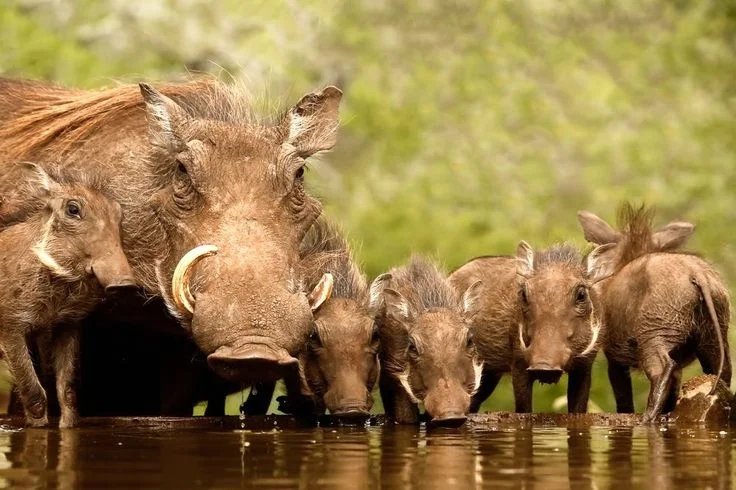 🍀生活习性:非洲疣猪是高度群居的动物。它们经常会组成一个小型家庭团队,通常由一或多头的雌性疣猪和它们的幼猪所组成。单独的成年雄性疣猪有时候也会加入这一群野猪之中。非洲疣猪喜欢彼此躺在一起,用嘴和牙为对方整理身上的毛发。非洲疣猪善于挖洞,这样既可以躲避掠食者,又可以防止太阳的暴晒。虽然它们非常善于挖洞,但它们还是会利用其他动物的已经挖好的洞穴作为自己的家。它们在进入这些洞的时候是后半身先入,头始终对着洞口,这样就能先用它的獠牙来对抗入侵者。每天早上醒来的时候,它们会从洞穴中高速地冲出来,以躲避任何可能在洞口等待的掠食者。好斗。 以青草、苔草及块茎植物等为食,偶食腐肉。喜泥浴。生存能力很强,非常适应高温和干旱环境,可连续数月不饮水。