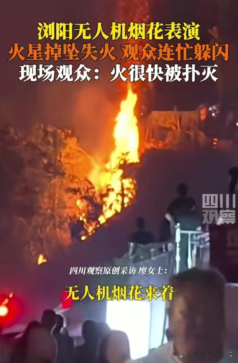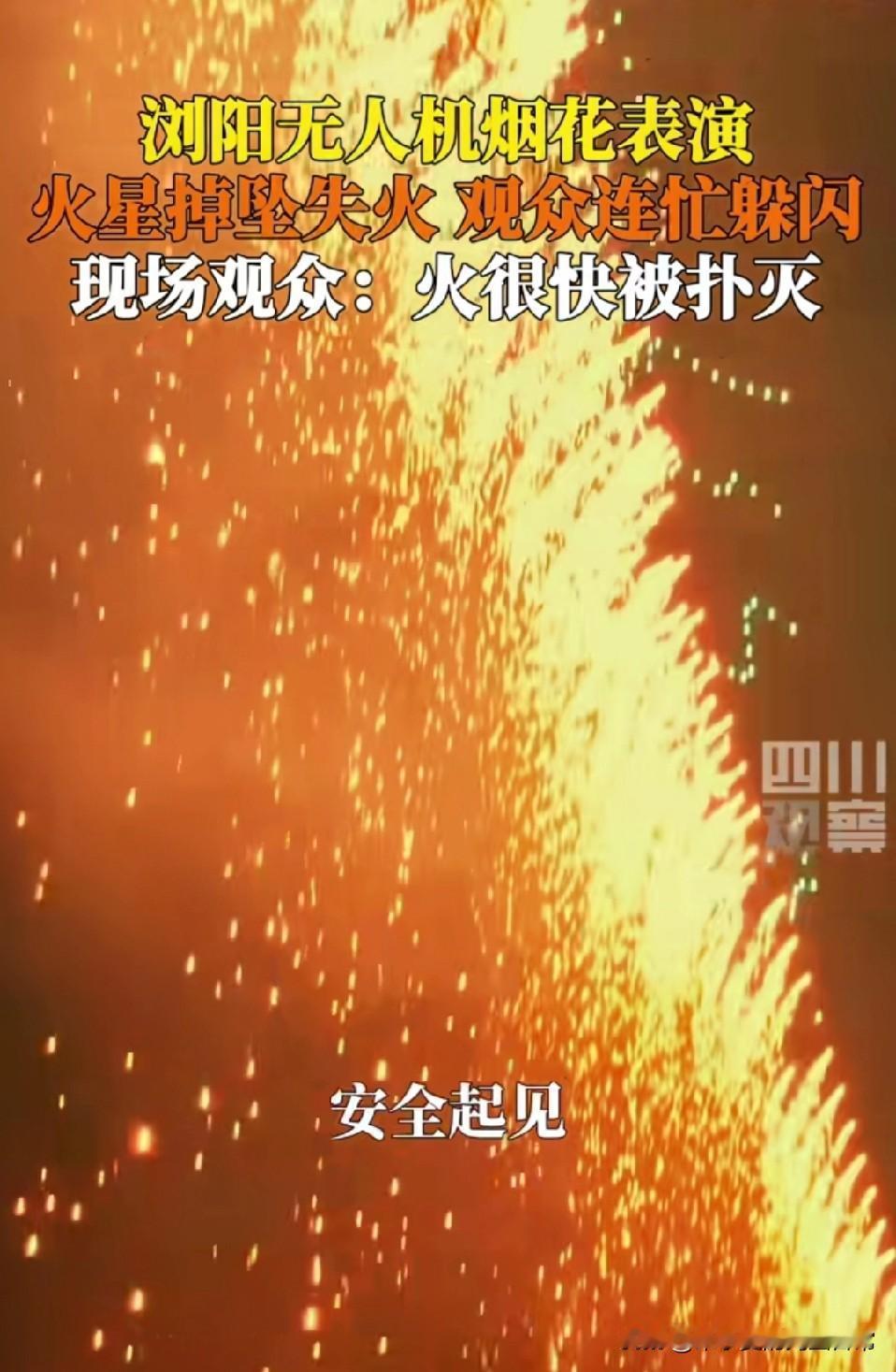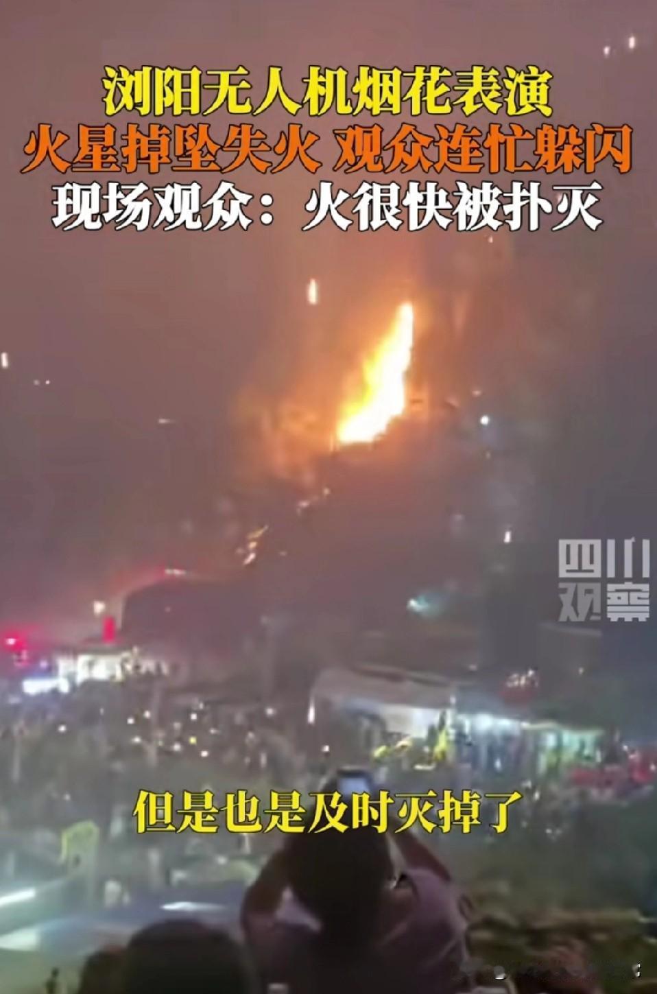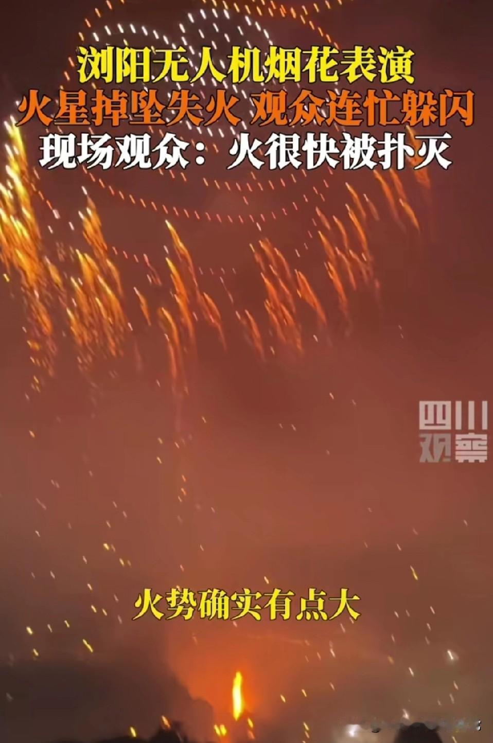 无人机烟花秀突发火情!火星如雨坠山着火,观众尖叫躲闪太惊心 浏阳那场无人机烟花秀你们看了吗?本是绝美夜空盛宴,结果火星跟下雨似的往山上掉,“轰”一下就燃起来了!现场观众吓得尖叫着躲闪,那火势蹿得贼快,谁看了不心头一紧? 好在消防员和工作人员动作麻利,火很快就被扑灭了。咱就说,这种大型表演,安全预案可得做足啊!不然再美的烟花,也抵不过一场意外的惊吓。你们觉得这种无人机烟花秀,是该更谨慎还是继续冲创意?评论区唠唠!