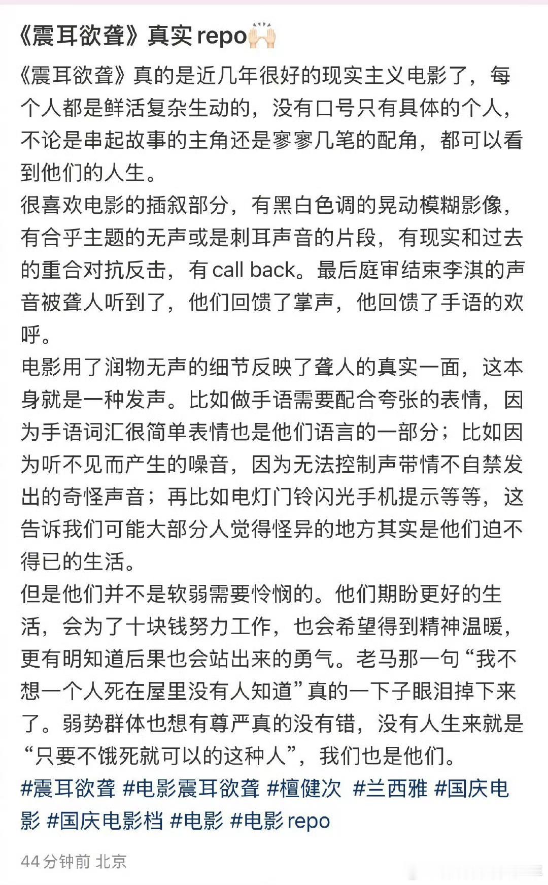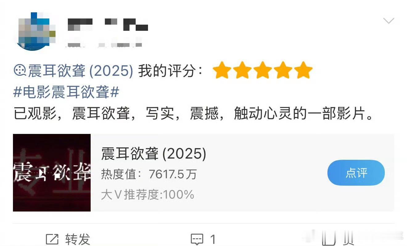 《震耳欲聋》首波点映口碑好评如潮!从前期特殊场路演到今日全国点映,是真的厉害~几乎每个看过的人都在说“大事很妙”!