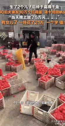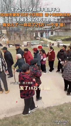 “有钱就是任性!”4月1日安徽蚌埠,一对夫妻在生了两个儿子之后,终于生下了一个女儿,为此这对夫妻不惜花费二十多万,发了十万个红鸡蛋,请了十班唢呐,甚至放了五万块钱的烟花来庆祝!网友:“看来投胎也是个技术活!”[无辜笑] 安徽蚌埠的一户人家,最近因为一场特别的庆祝活动吸引了全村人的注意,这户家庭中的夫妻俩,在相继迎来两个儿子之后,终于盼来了一个女儿,喜讯传来,父亲难掩激动,决定用一场隆重的仪式来表达自己的喜悦。 庆祝的阵仗可不小,这位父亲一口气准备了整整十万个红鸡蛋,全部染成喜庆的红色,挨家挨户分发给乡亲,他还同时请来了十班唢呐队伍,演奏声此起彼伏,整个村庄都沉浸在欢快的氛围中,夜幕降临后,价值五万元的烟花在夜空中接连绽放,照亮了村里的天空。 除了这些,他还向邻里派发了现金红包,让大家一起分享这份喜悦,据估算,整个庆祝活动前前后后花费了二十多万元,对于许多普通家庭来说,这确实不是个小数目,但这位父亲却觉得非常值得。 从这场庆祝的规模来看,这户家庭的经济条件应该不错,能够为女儿的出生投入这么多,说明他们确实很重视这个新成员,现场一位前来帮忙的邻居表示,这家人平时为人就很豪爽,这次更是把喜事办成了全村的喜事。 虽然外界议论纷纷,但能看出来这位父亲是发自内心地高兴,对他而言,迎接女儿的喜悦,已经远远超过了花费的金额,而这种喜悦,也通过红鸡蛋、唢呐和烟花,传递给了整个村庄。 网友们议论纷纷: "这家人太有爱了!虽然花钱多了点,但这份喜悦的心情完全可以理解,女儿就是父母的小棉袄啊。" "蚌埠大哥这是把喜事办成了春晚现场啊!十万个红鸡蛋,这得发到啥时候?羡慕当地的乡亲们。" "说留着买房的那位,人家能花20万庆祝,还差那点买房钱吗?这明显就是不差钱的主儿。" "重女轻男实锤了!两个儿子看到这场面会不会吃醋啊?哈哈。" "传统习俗就该这样传承!红鸡蛋、唢呐、烟花,这才是中国人庆祝喜事的正确打开方式。" "花五万放烟花有点浪费了,不如捐给希望工程,既能庆祝又做了好事。" "作为蚌埠人,那天确实看到烟花了,整整放了半个多小时,现场特别震撼。" 您怎么看待花20多万庆祝生女儿这件事,如果您有喜事,会选择怎样庆祝? 官方信源:九派新闻官方报道