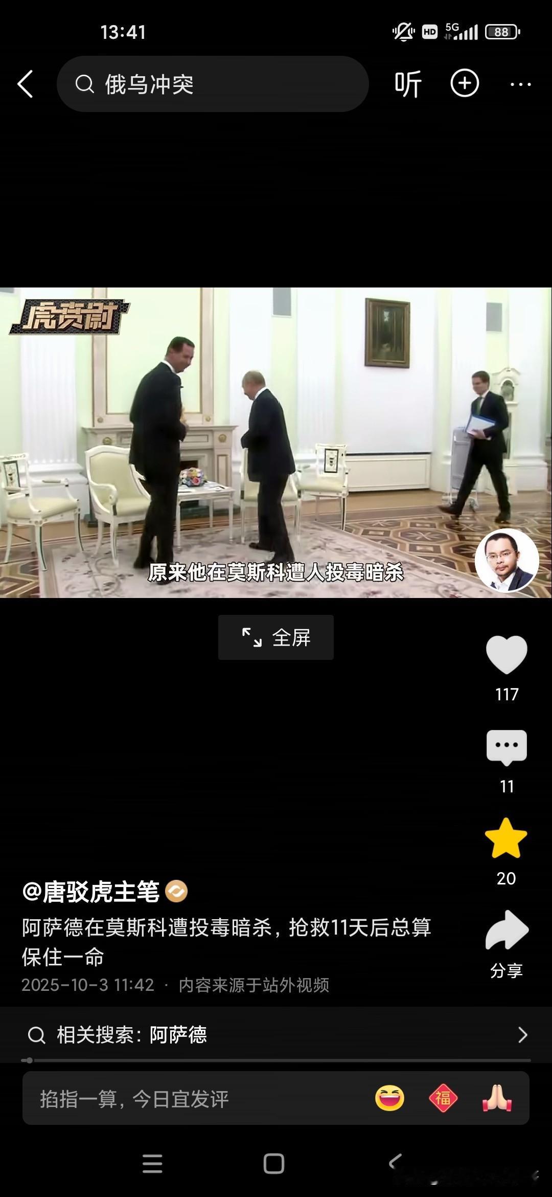 叙利亚前总统阿萨德没想到在俄罗斯安保如此严密的情况下还是被投毒了,目前的话他已经被安排到一个俄罗斯神秘医院那边进行治疗,去探视的有有他的弟弟,还有其他的亲人,俄罗斯总统也做过指示要全力抢救阿萨德,阿萨德之前被以色列支持的民兵武装给推翻之后,俄罗斯也无能为力,中国更没有说支持阿萨德政权,国内民间的情绪不代表政府的决定,巴斯德在被推翻以后,携带大量的资金到达俄罗斯,准备在俄罗斯得到政治庇护啊,但是因为他自己掌握了大量的财产,所以说受到很多人觊觎,将来的是否会受到同样的投毒暗杀还很难说!