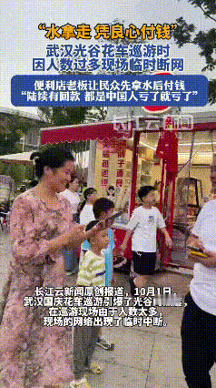 “水拿走凭良心付”!武汉退伍老板这波操作,把咱中国人的信任玩明白了! “都是中国人,亏了就亏了!”武汉光谷断网那天,便利店老板金大哥(退伍老兵)这话一喊,谁看了不心头一热? 10月1日光谷花车巡游挤爆了人,现场断网付不了钱。金大哥直接敞开便利店:“水先拿走,拍个码回去凭良心付!” 还免费发了60多箱水,说“大家来武汉玩,咱不能让人渴着”。更绝的是,他后续陆续收到了回款,这信任交换,暖到骨子里! 咱就说,这退伍老兵的担当,这“中国人不亏中国人”的实在,是不是把人与人之间的信任玩明白了?这种善意接力,看着就带劲! 要是你在现场,会主动把钱补上不?你被这份“良心信任”戳中了没?