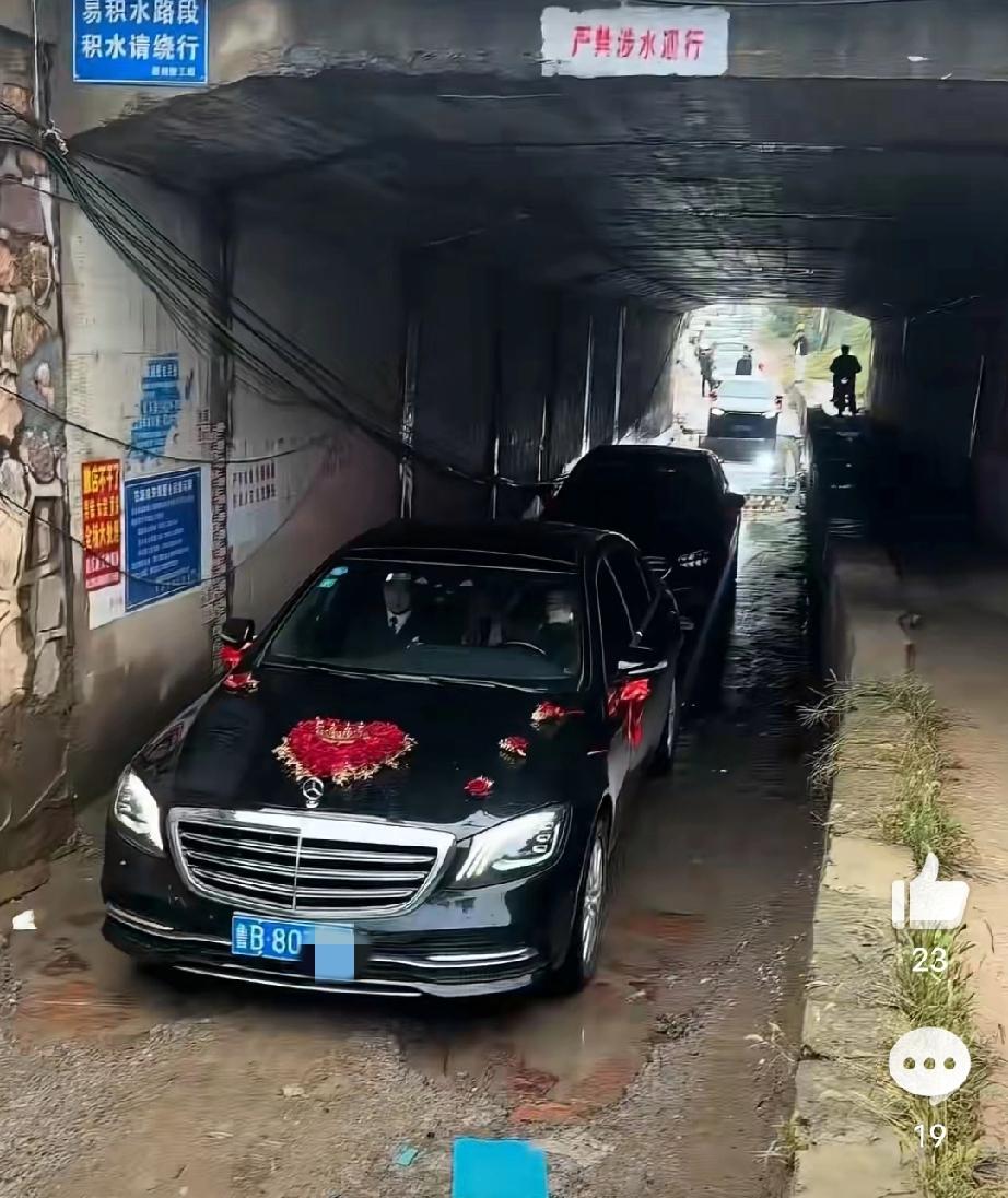 国庆节当天,山东某地,两队婚车碰头互不相让等了两个小时,俗话说婚车不能倒退,这局