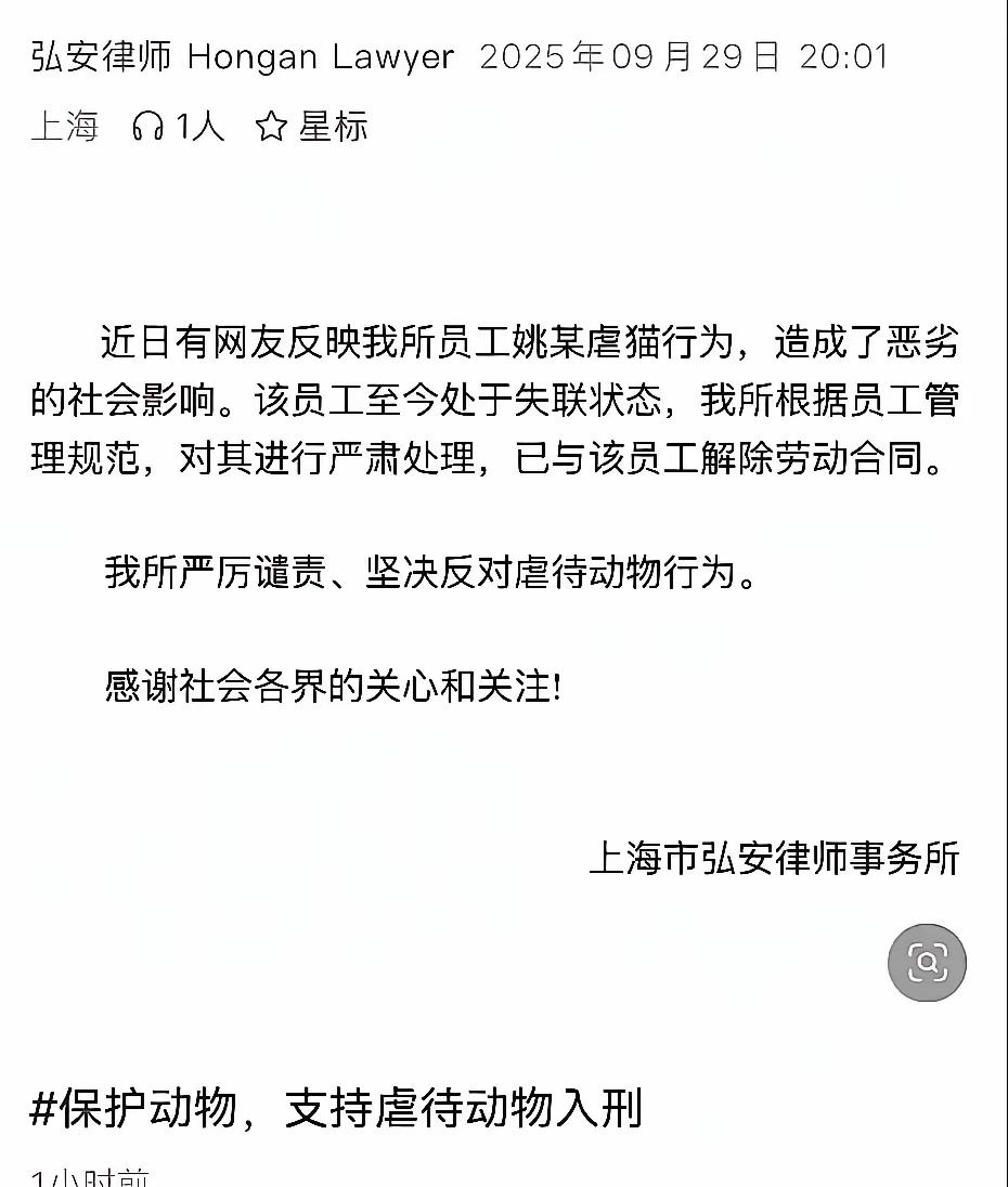 妈呀,这个律师太变态了吧! 这个叫姚远的年轻律师,看着文质彬彬的,还戴着副眼镜,谁能想到是虐猫狂?白天衣冠楚楚是个律师,下班了干这种事——从2017年到现在,居然虐杀了4000只猫!就为了拍虐猫视频,拿到外网上卖钱,简直残忍到骨子里!不知道是心理有问题还是仅仅为了赚钱? 不过被曝光后已经被律师事务所开除了!网友们热议:这种心狠手辣的人,根本不配当律师,就该永世不准再入这行!你们觉得这样的惩罚够吗?