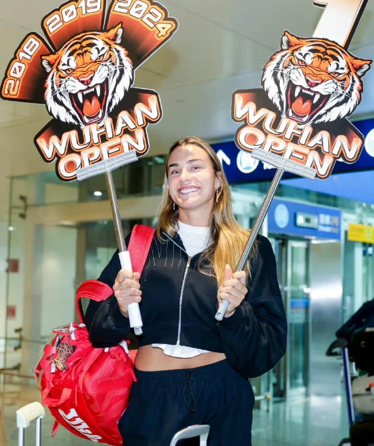 来咯、来咯!! 球迷太有才了,送这虎牌[笑哭] 萨巴伦卡:武汉是我的福地!三冠王!! 争取今年实现第四冠!! 网友:虎妞虎虎生辉!! 今年的武汉网球公开赛星光熠熠、萨巴伦卡、斯瓦泰克、高芙等等TOP10都会参加!!期待开赛!!#萨巴伦卡# #武汉网球比赛#