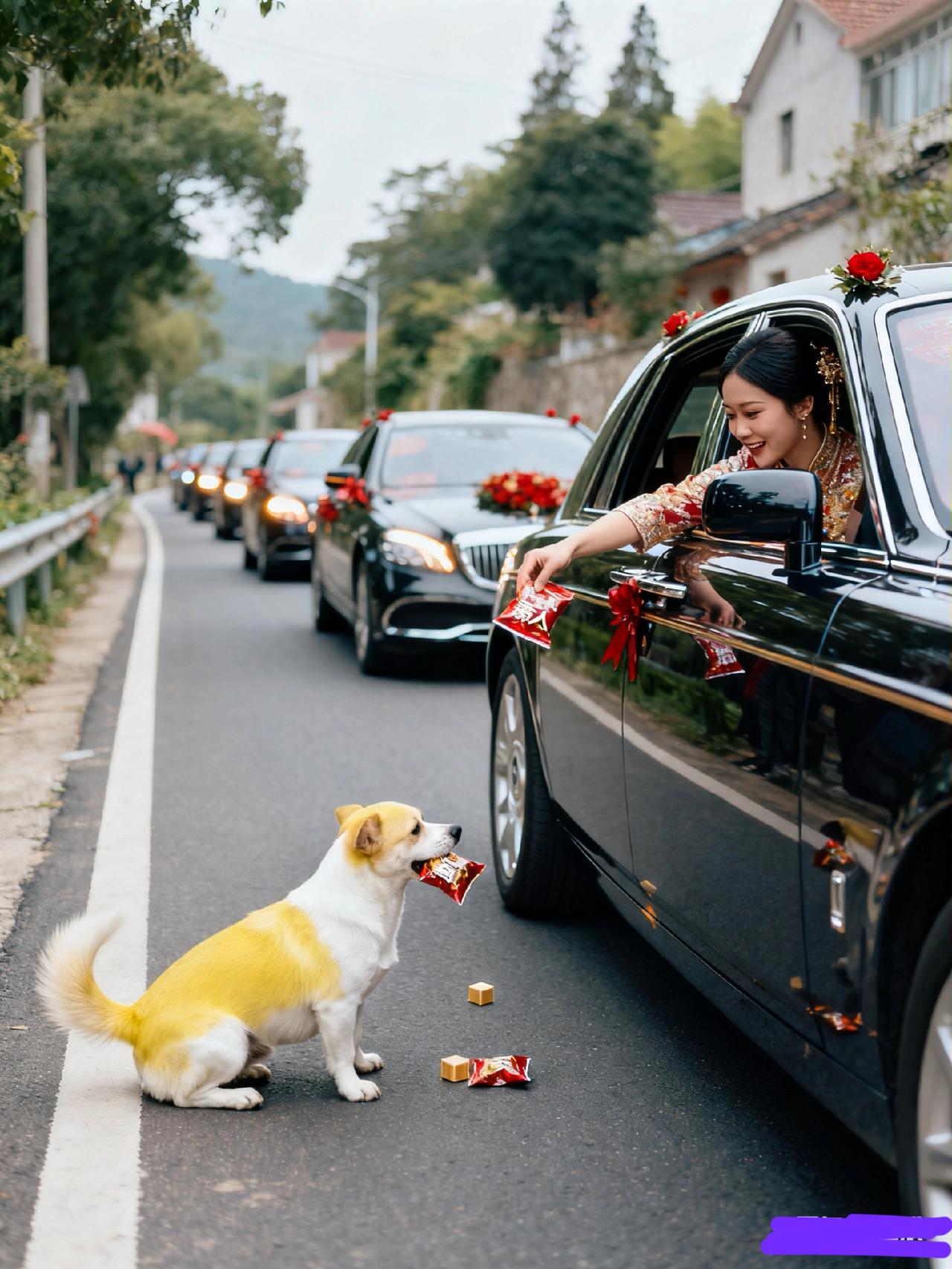 婚车遇“硬核娘家人”拦路!小狗蹲守路中央讨喜糖,网友:这把关太萌了 婚车队伍正喜气洋洋往新娘家赶,半路却被个“小不点儿”拦住去路——一只黄白相间的小狗蹲在路中央,摇着尾巴盯着车窗,活像提前上岗的“娘家人”,非要讨份喜糖才肯放行。 这一幕被伴郎用手机拍了下来。视频里,司机放缓车速不敢动,生怕惊扰了这个“小客人”。伴娘笑着从车窗递出几颗喜糖,小狗叼起糖块却没立刻走,反而围着婚车转了两圈,像是在确认“礼数”到了,才蹦蹦跳跳跑到路边,目送车队远去。 据新娘邻居说,这只小狗是附近的“常客”,平时总在小区里溜达,性格特别温顺。“没想到今天这么有仪式感,拦着婚车要喜糖,比咱们安排的拦门环节还热闹!”新娘笑着说,看到小狗的瞬间,紧张的心情都被冲淡了,觉得这是婚礼上最意外的好彩头。 视频传到网上后,网友们纷纷被萌化:“这是老天爷派来的吉祥娃吧,比人拦门可爱一万倍!”“建议纳入婚礼必备环节,这把关既温馨又不尴尬”“小狗都知道讨喜糖,看来这对新人福气满满!” 一场意外的“拦路”,没有让婚礼延误,反而成了最特别的记忆。原来幸福的瞬间,有时就藏在这些不期而遇的小美好里。 马路上拦婚车 婚车挡路 好事来婚车