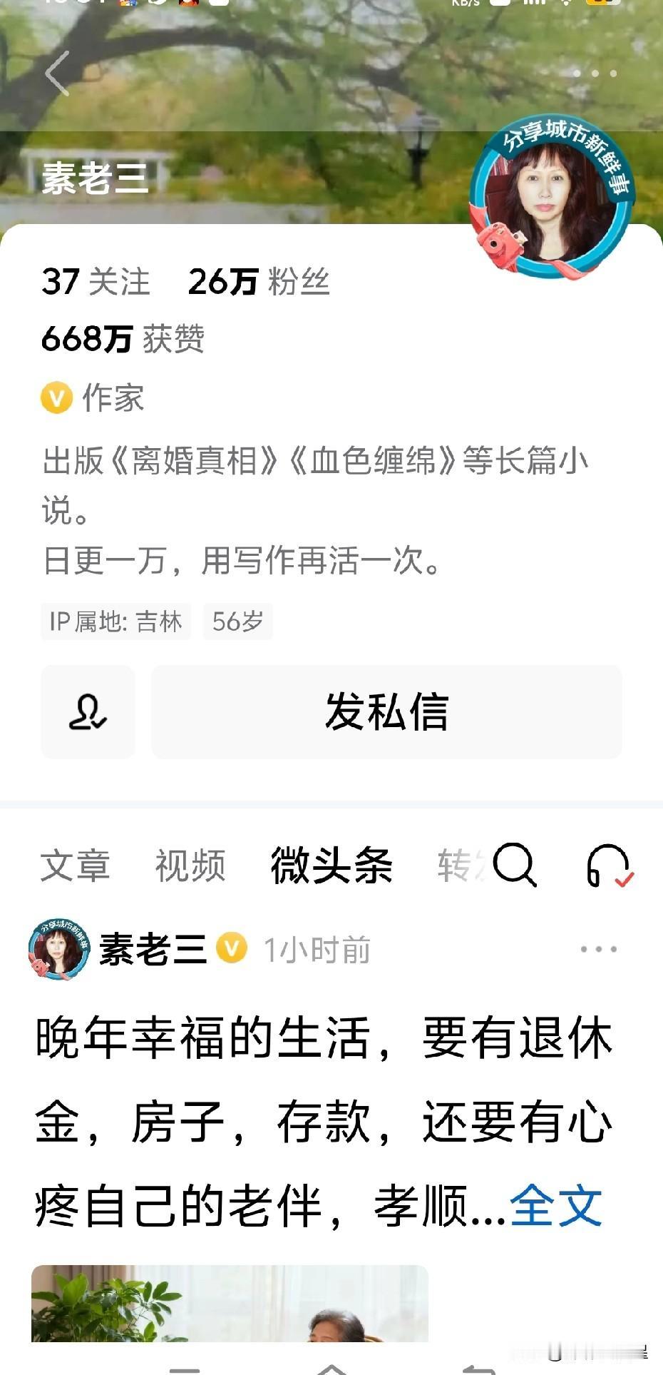 刚才看头条作家素老三新发的一篇微头条,她说,人的晚年幸福的生活,要有退休金,房子
