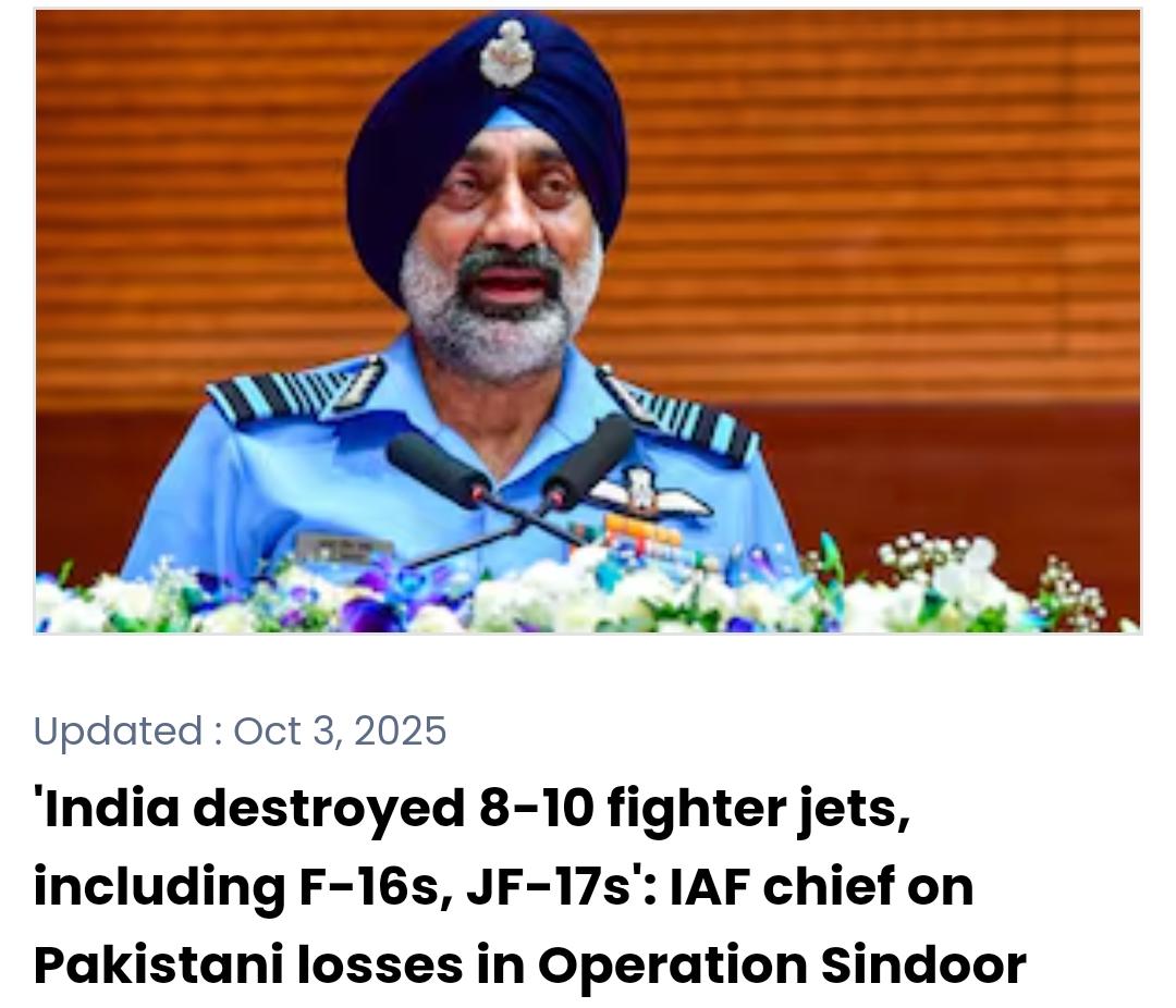 印度在“朱砂行动”中摧毁的巴基斯坦军机数量又涨了,现在的战绩是包括F-16和JF-17在内共摧毁8-10架,一周前的数据是6架。 根据印度空军参谋长辛格的最新说法,印度利用防空导弹摧毁5架疑似F-16或JF-17战机,摧毁1架预警机,并在最后一轮的轰炸中摧毁4个地面雷达站、3个机库、2个地面指挥中心、一套地空导弹系统以及4-5架F-16战机。 辛格的最新发言还守住了底线,没把巴基斯坦的J-10放进去,但也搁不住他们这么噌噌噌的往上涨战绩。宝莱坞的电影不知道拍出来没,如果已经拍完了,那大概率要亏本,战果对不上,得重拍。