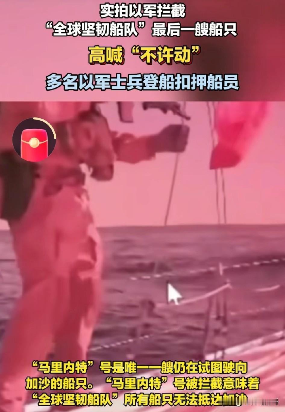 援助加沙“全球坚韧船队”最新消息:最后一只船只“马里内特号 ”并没冲出封锁线,10月2日下午被以军扣押 !(信息来源,新京报 ) 这标志着“全球坚韧船队”所有船只无法抵达加沙 。 “马里内特”号之所以现在才被以军扣押,是因为它出现机械故障 ,掉了队。 “马里内特”号可贵的地方就在于他知道前方的船队已经被以军扣押,所有船员也被以军带走,虽然知道最终他们也会遭受跟前方船队同样命运被以军扣押带走 , 仍然按照计划向加沙进发。 被以军扣留的船员的命运可能会遭受以方审判或者驱离。 这些船员虽然没能达成他们的目标 , 他们的勇敢的行为, 注定要让意大利海军汗颜 。 这些船员没有武器 , 也不是军人, 有的是律师 , 有的是环保人士 , 都是社会上的一些普通人 , 他们为了道义,为了加沙的人民能吃上一口饭,或者得到一点药品 , 冒着被以军抓捕的风险,仍然去努力的完成自己的使命。 但意大利军舰在以军出现需要它为船队护航的时候 , 违反最先的护航承诺 , 突然宣布撤回护卫舰,停止为“全球坚韧船队”护航, 连装模作样硬刚一下都不愿做 , 理由竟然是避免与以色列军队发生冲突 。 既然这么怕,当初为什么要打护航的旗号来护航? 可以说一点军人的气概都没有 ! 可怜了“全球坚韧船队”的船员 , 不得不双手举头被以军强迫带走,而船上本来送给加沙人民的物资也被以军扣下 。 可怜加沙的人民 ,又有很多人得不到食物和药品。 对以色列冲撞拦截加沙救援“全球坚韧船队”,欧洲多国爆发大规模抗议活动。 对以色列来说,这些抗议对它起不了作用 。 对哈马斯来说将是他们的抵抗意志又一次打击。这支船队由50多个国家联合组成 ,以色列同样开火, 给人感觉以色列的意志才是真正的坚不可挡, 有句话说就是叫遇神杀神,遇魔杀魔 , 没有什么能阻止他们消灭哈马斯!