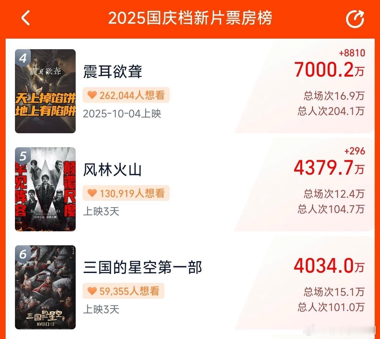 檀健次《震耳欲聋》昨天点映好像口碑爆了,点映票房第二天逆跌中,基本上一点一个五星好评,几乎所有电影博主都说是国庆档最佳电影