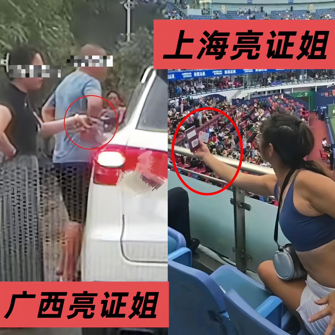 两个“亮证女”在网上火了, 上海亮证姐和广西亮证姐都是嚣张, 但结局却天差地别! 上海网球大师赛上,46岁的谢某某酒后失控,持续大声喧哗,多次打断比赛。裁判多次劝阻无效,比赛不得不中断。 安保人员上前制止时,她竟掏出身份证和儿子的护照亮证挑衅,还对安保人员竖起中指,最终被工作人员抬离现场。 警方通报对谢某某依法予以行政处罚,但未公布具体处罚内容。 还记得广西防城港的“亮证姐”侯某某,在狭窄村道会车时与对方司机发生争执,她拿出一本“行政执法证”威胁对方,还靠父亲认出了对方是远亲,说出了司机的家庭住址。 她的行为引发公愤,最终被处以行政拘留五日。她丈夫因未妥善保管行政执法证件被立案调查,相关责任人也都被问责。 同样是亮证耍特权,一个行拘五天,一个处罚暂时未公布。 什么时候流行亮证的?下次遇到事情把我父母的老年证拿出来亮![呲牙] 上海这位谢女士被扒出身家丰厚,嫁瑞典籍丈夫,开80万保时捷,酒后吐真言往往说母语,现场她却大喊“I‘m not Chinese”,网友批她崇洋媚外。 其实就是假洋鬼子, 她被抬走后,观众们全场热烈鼓掌喝彩。这就是人民的声音! 欢迎大家评论区聊聊!