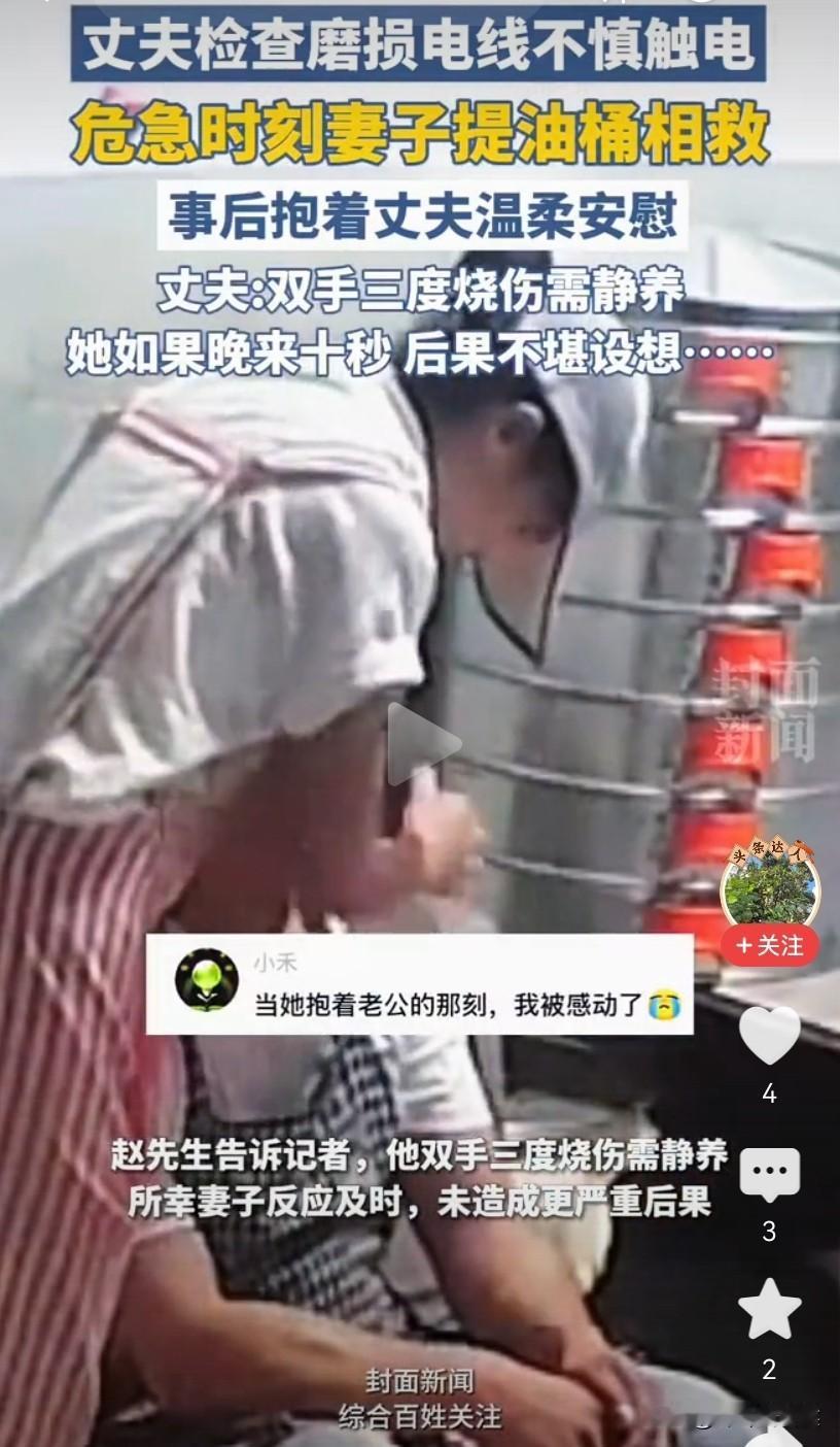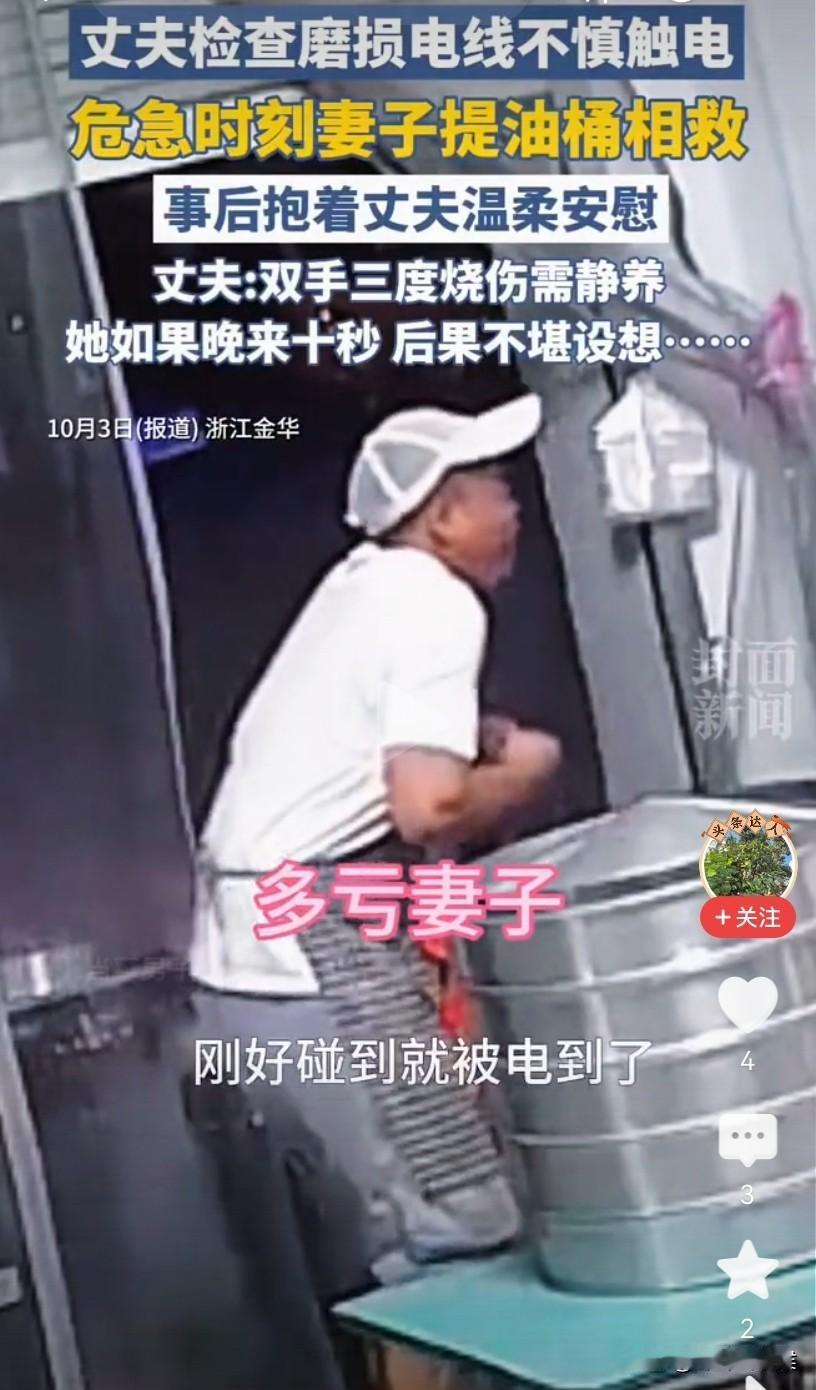 “再晚10秒,后果不堪设想!”丈夫触电,妻子提油相救,事后妻子紧紧把丈夫搂入怀中