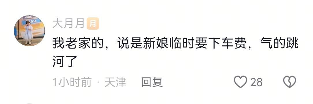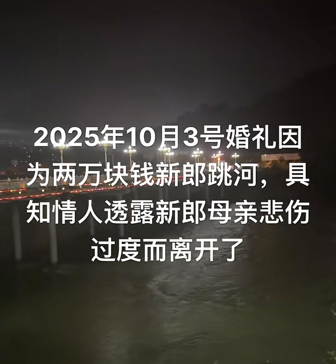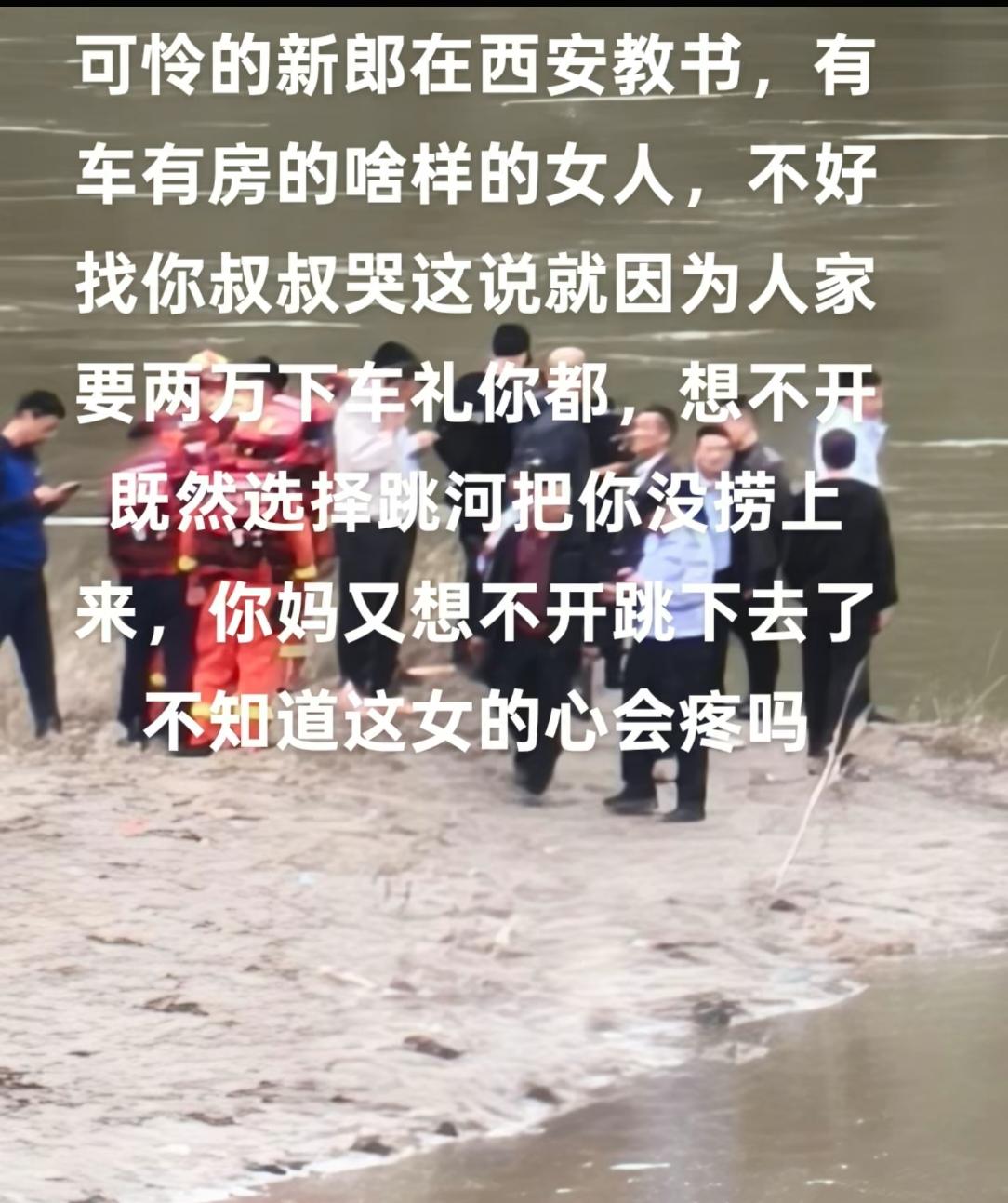 陕西一新郎婚礼前跳河,目前下落不明,有知情网友说:我老家的,说是新娘临时要下车费,新郎气的跳河了。 这是把人家新郎逼到什么程度了哦!连命都不想要了,新娘太狠了。 其实结不了婚就不结啊,不结婚不会死啊,人生就那么几十年,爱自己不好吗? 最极端的方式,惩罚的最终自己和至亲。《芙蓉镇》有句台词:活下去,像畜牲一样活下去。 坚信只要活着,就能过得去。