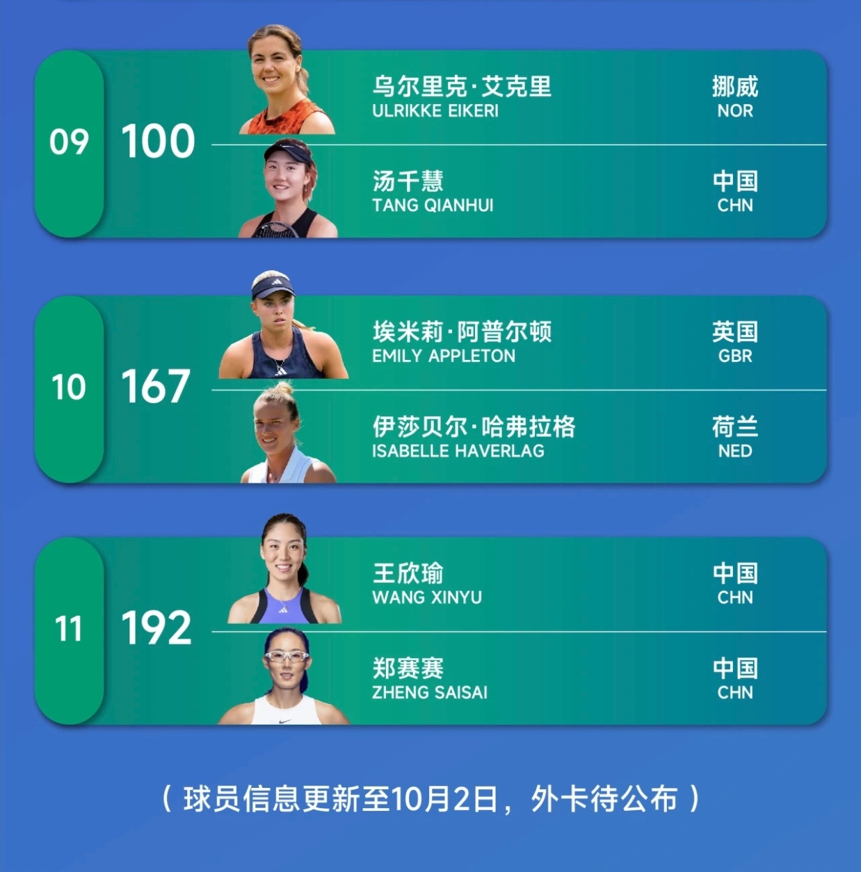 大满贯冠军王欣瑜、西格蒙德、肯宁领衔参加! 看点十足[鼓掌][鼓掌][鼓掌]
