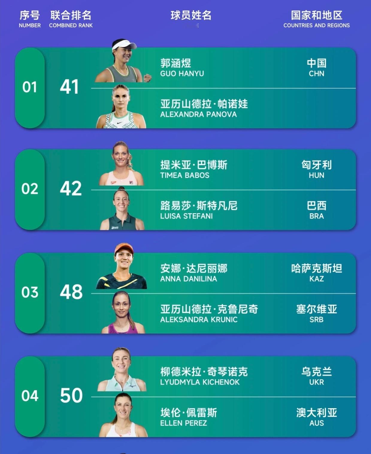 郭涵煜&帕诺娃能都搭上总决赛末班车