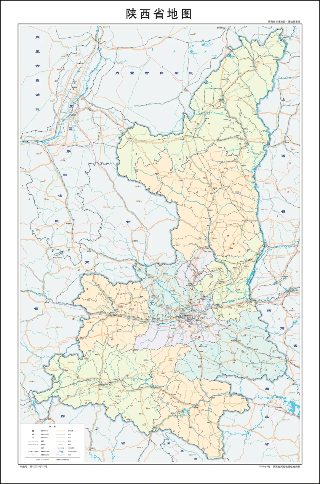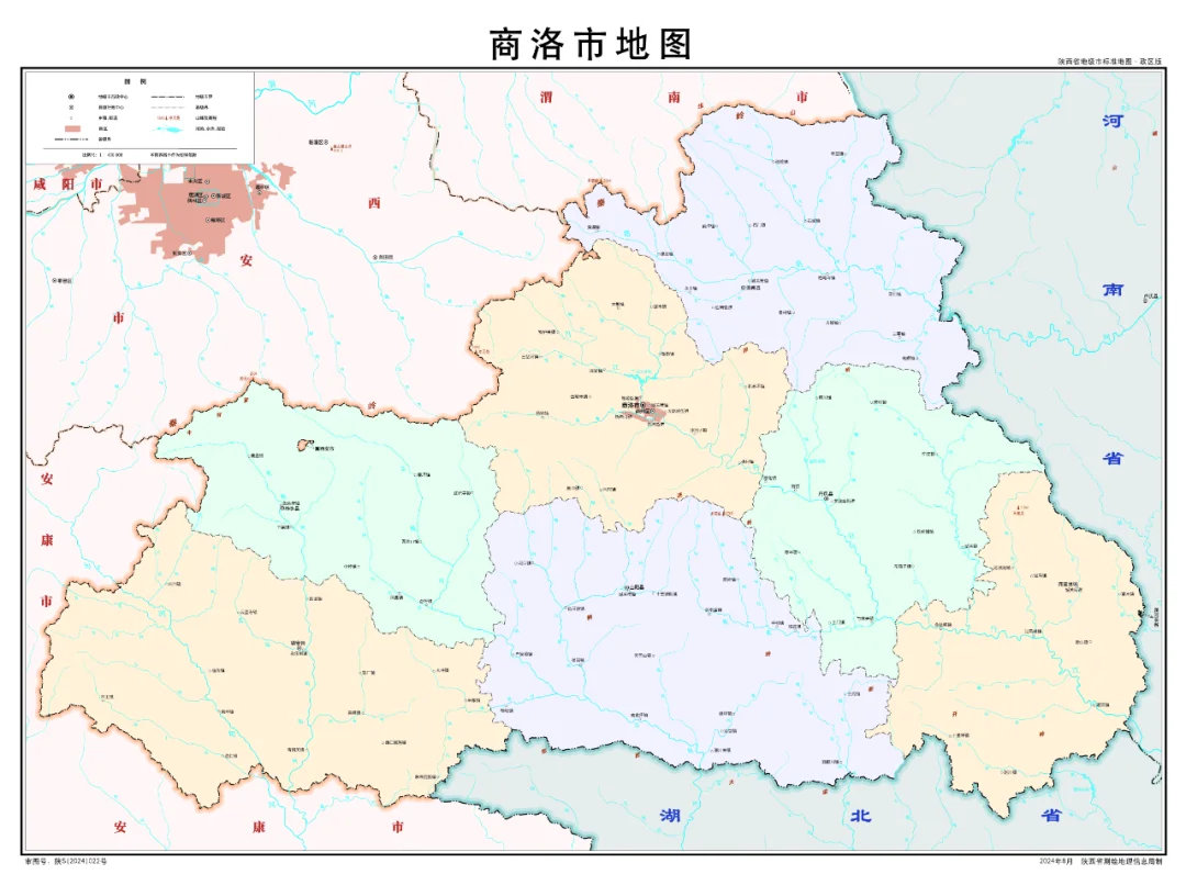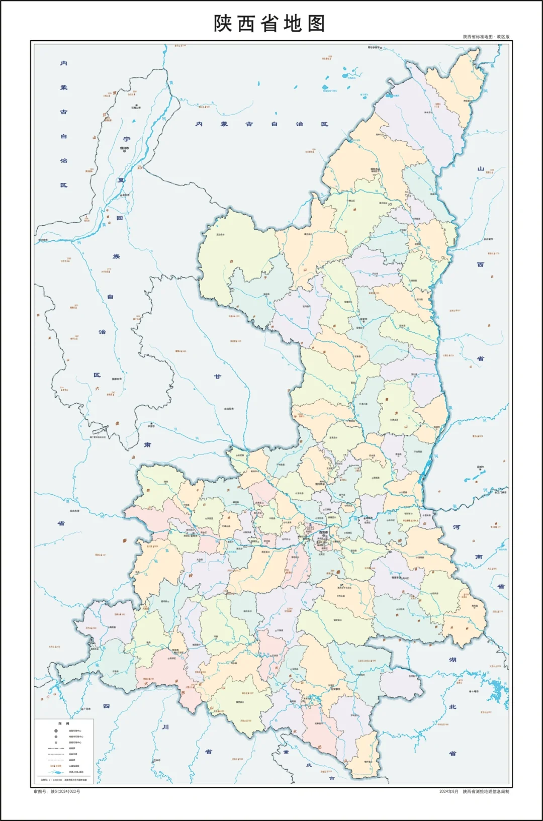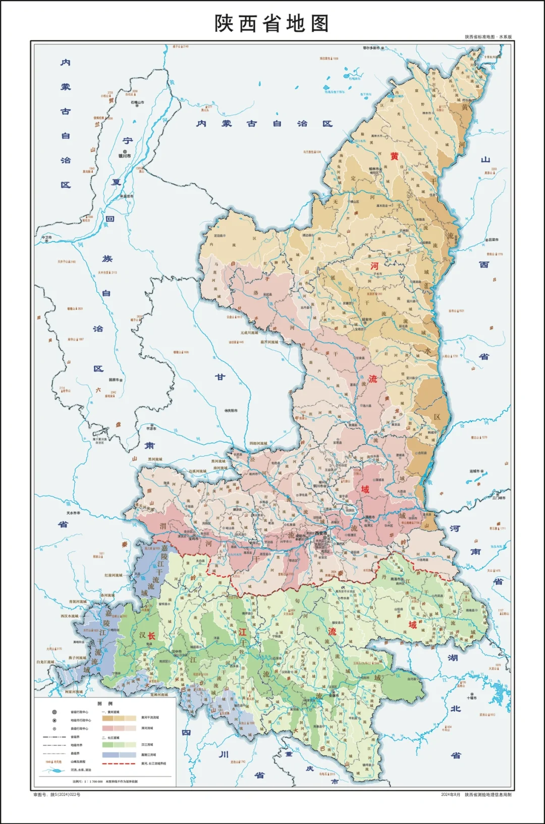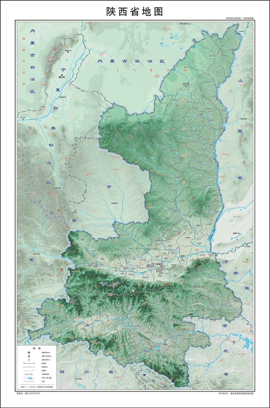陕西省行政划分,山脉+河流高清地图