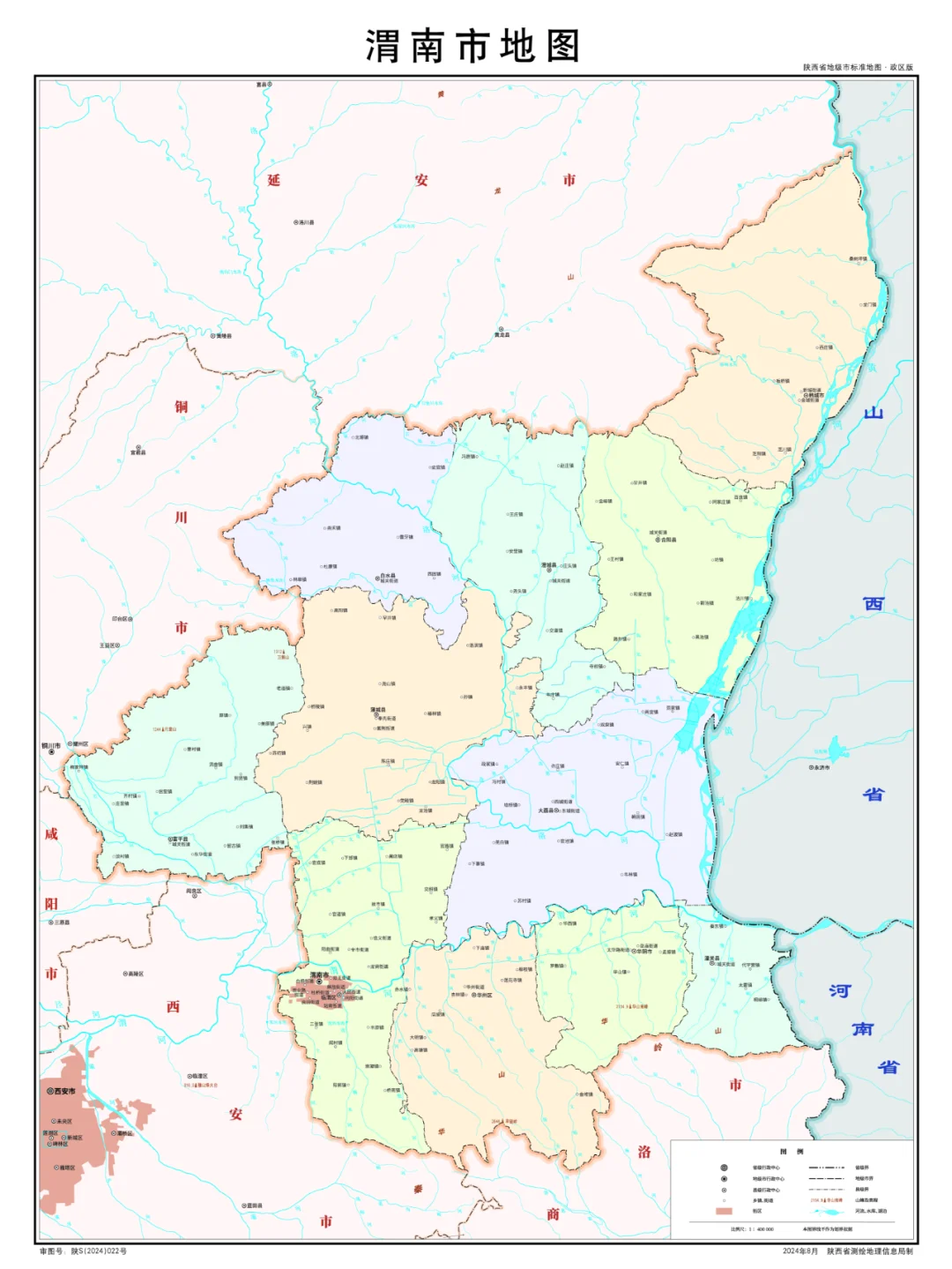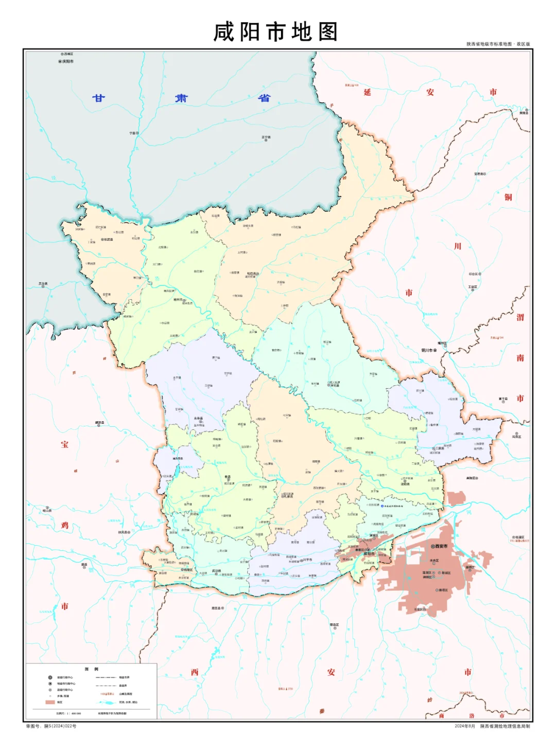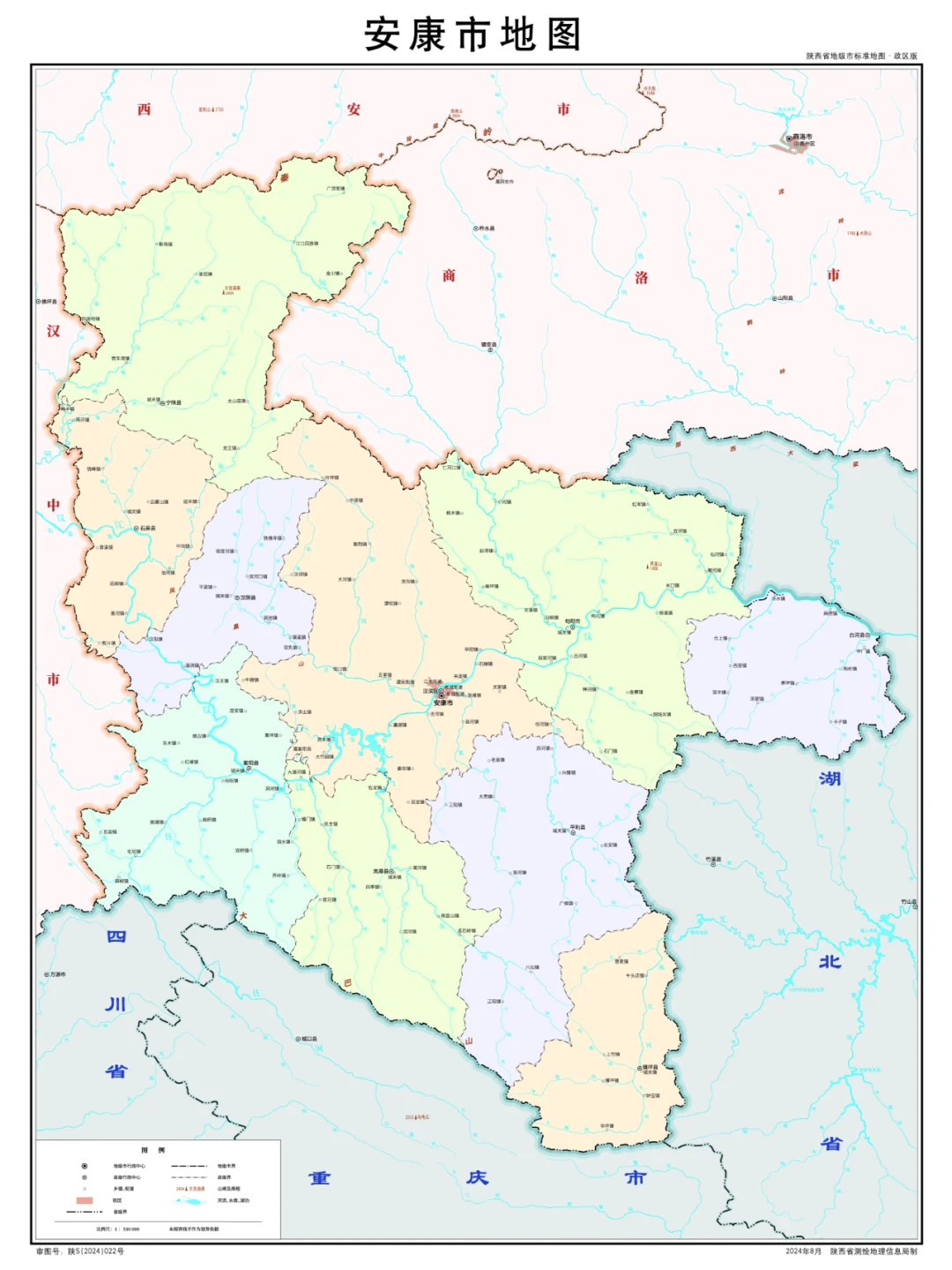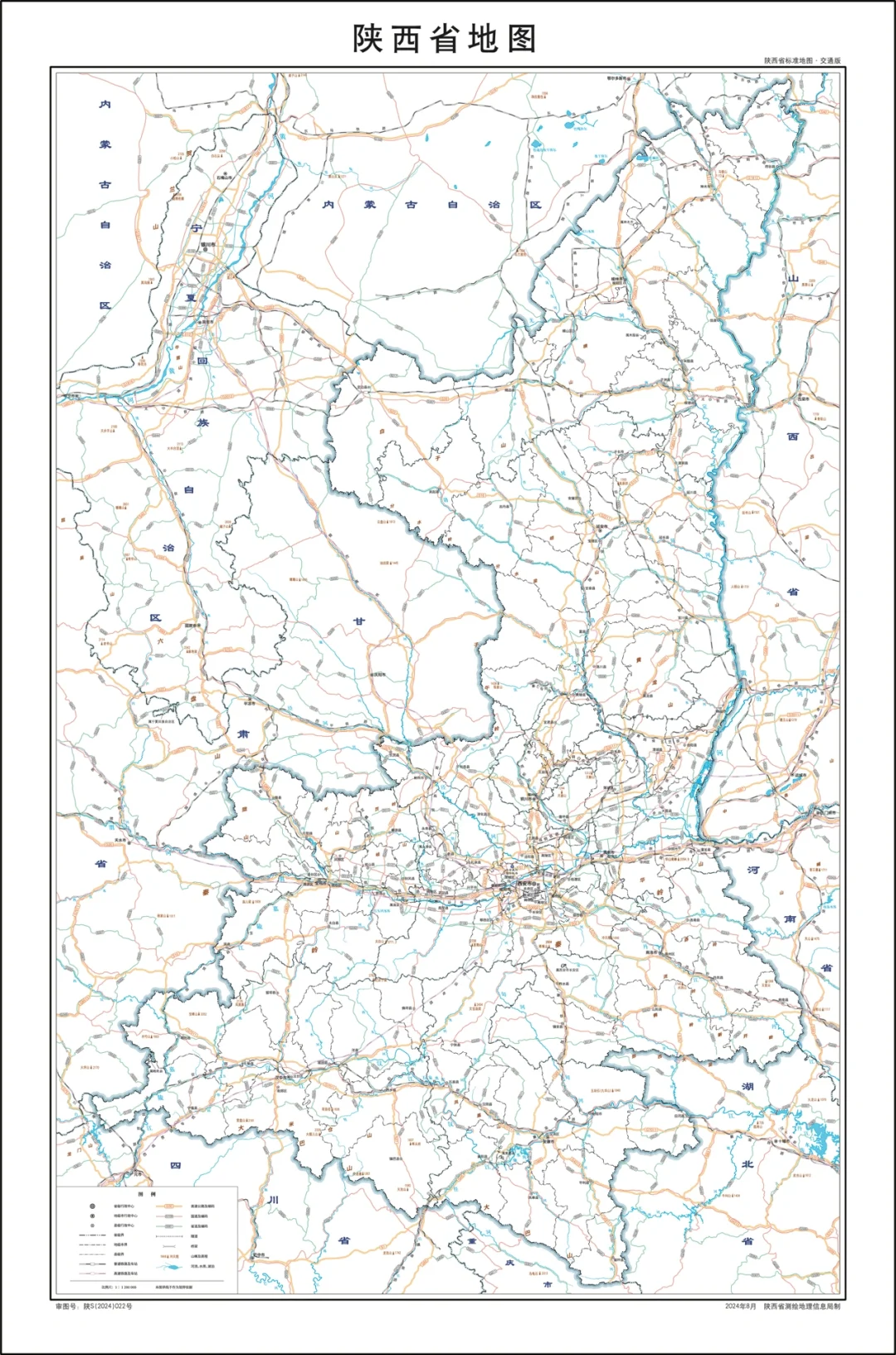 陕西省行政划分,山脉+河流高清地图