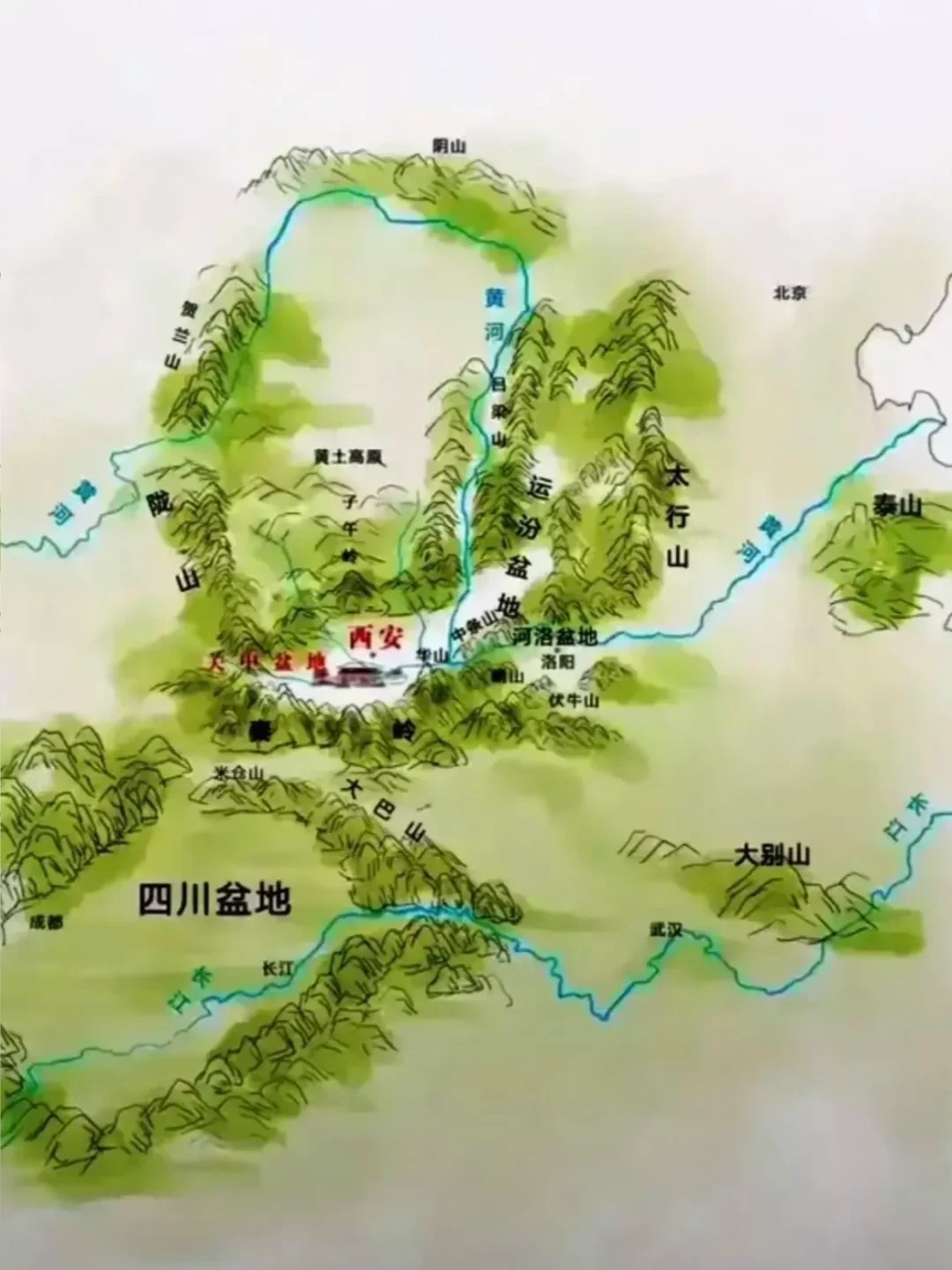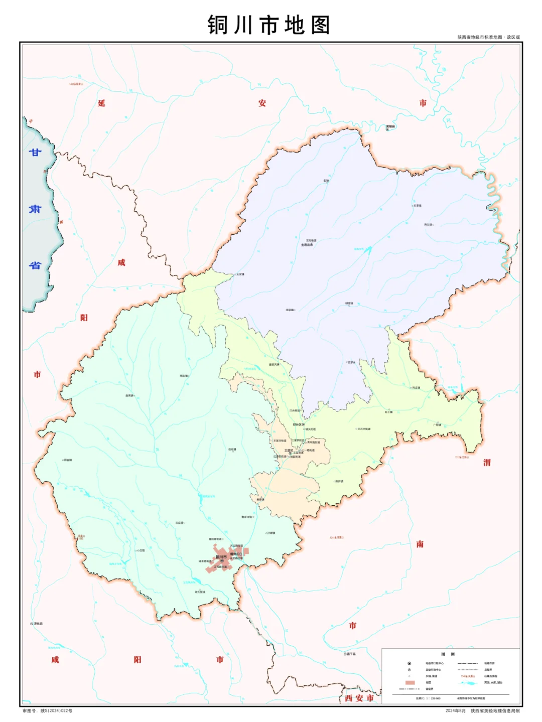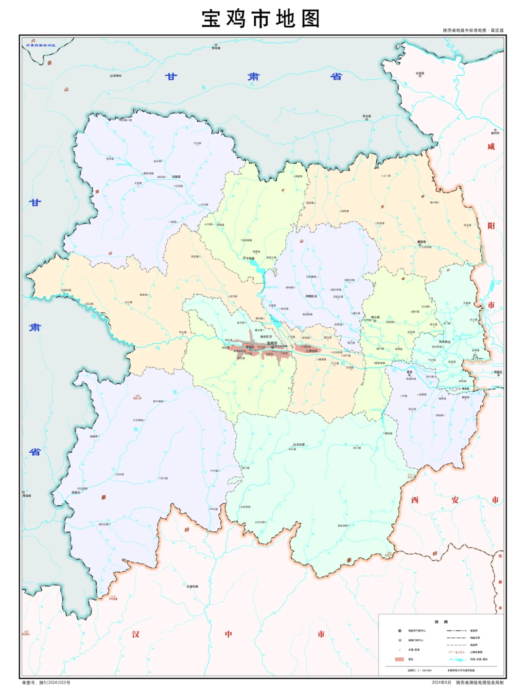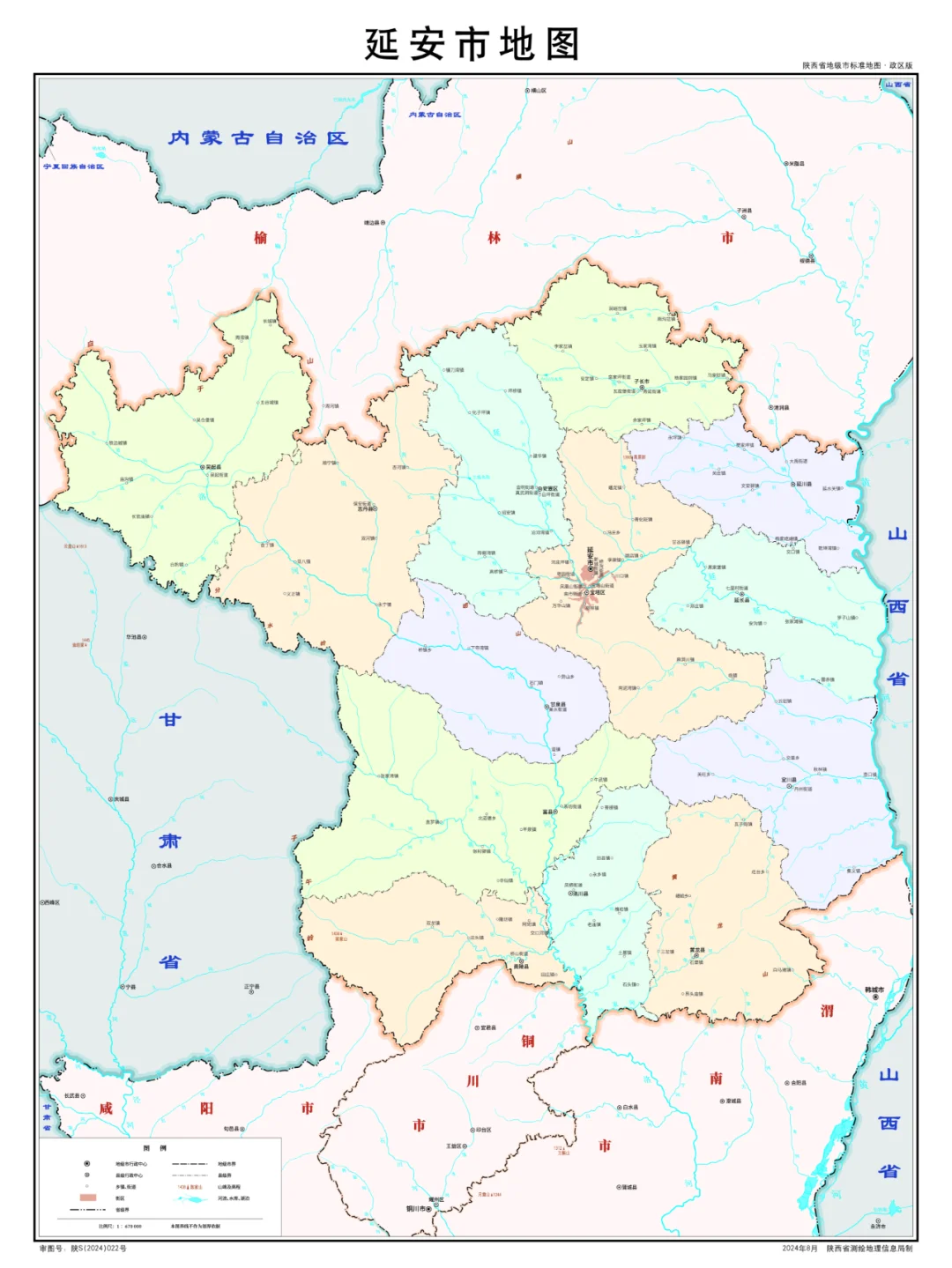 陕西省行政划分,山脉+河流高清地图