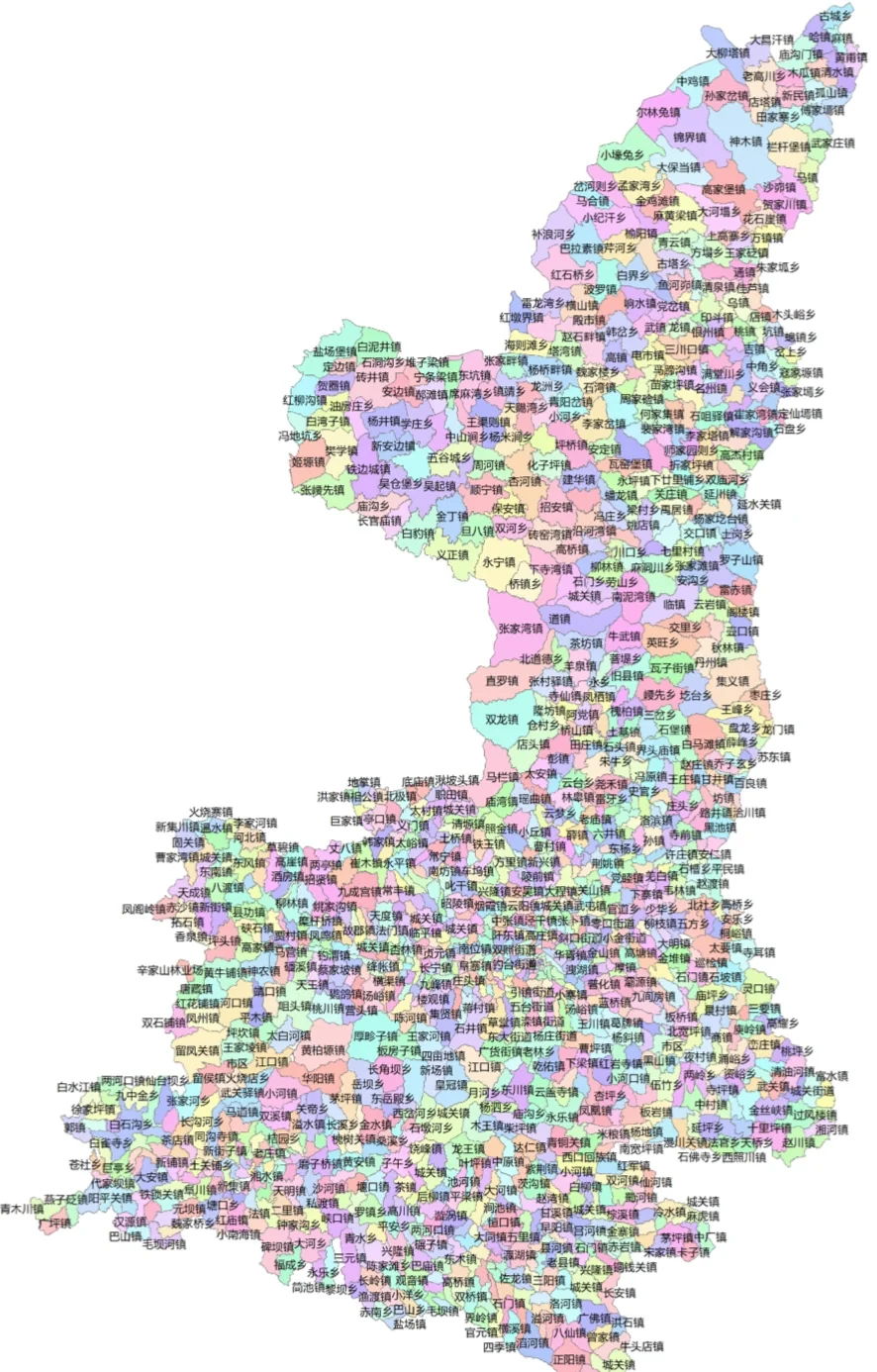 分布为安康、宝鸡、汉中、商洛、铜川、渭南、西安、咸阳、延安、榆林等各地地图。